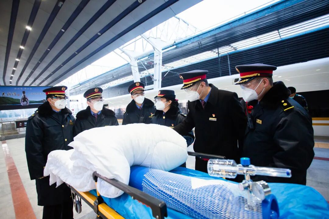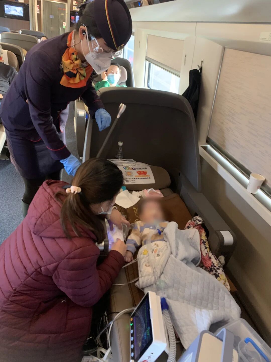 患儿一分钟都不能脱氧,进京的路程十分艰难。经过专业医护评估,最终确定高铁转运的方案。