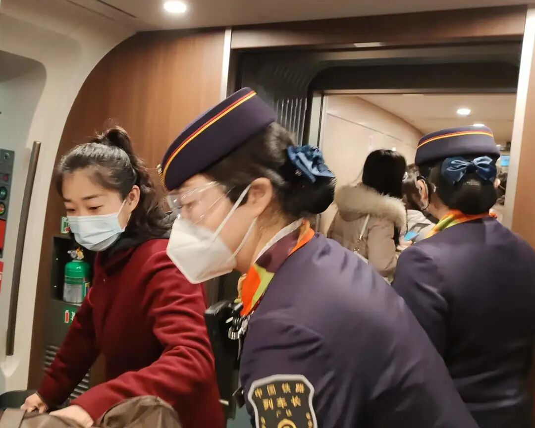 列车长王巧玲接到通知后,丝毫不敢马虎。她带领乘务组挨个告知在长沙南站下车的旅客:“麻烦大家从后门下车,等会有一名重点旅客需要从前门上车,感谢大家配合。”