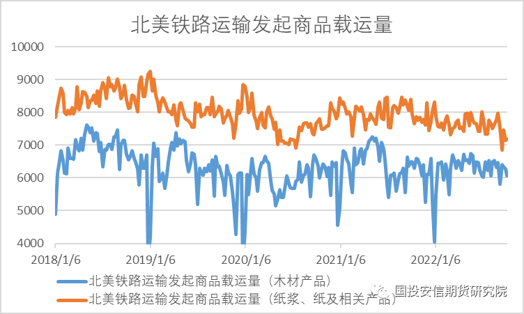 目前加拿大针叶浆运输还存在一定问题,主要在铁路运输环节。从AAR数据看,北美铁路运输纸浆及纸制品发运量自2021年下半年有所下滑,目前仍处在下滑态势中,处于近几年历史同期较低水平,未看到恢复态势。这也与去年下半年以来针叶浆发运量减少相吻合。同时上游木材产品铁路运输发运量也受到一定影响,2021年下半年以来出现回落,同样未看到发运恢复情况。而关于北美铁路运输问题,相关报道也可以了解到,加拿大BC省纸浆生产和运输出现问题,一个原因在于原料端纤维供应短缺,由于建筑行业需求疲软,导致BC省削减锯木厂,这也限制了针叶木片的供应,木片价格自2021年三季度以来持续攀升,原料短缺加之成本上涨,BC省浆厂开始减少生产。另外一个主要原因在于铁路运输问题,铁路运输导致原料供给受到限制,纸浆发运受限,但我们看到针叶浆生产商手里库存偏高,运输问题让货物积压在供给端,无法运输到需求端,造成其他地区针叶浆供应缩减,而加拿大浆厂被迫停产,其中Canfor Taylor纸浆厂今年以来一直在停产,可能要到明年春天才能重新开工。加拿大作为针叶浆主产国之一,铁路运输问题导致针叶浆发运自去年下半年以来持续下滑,目前铁路运输未看到恢复,预计针叶浆发运还将受到限制。