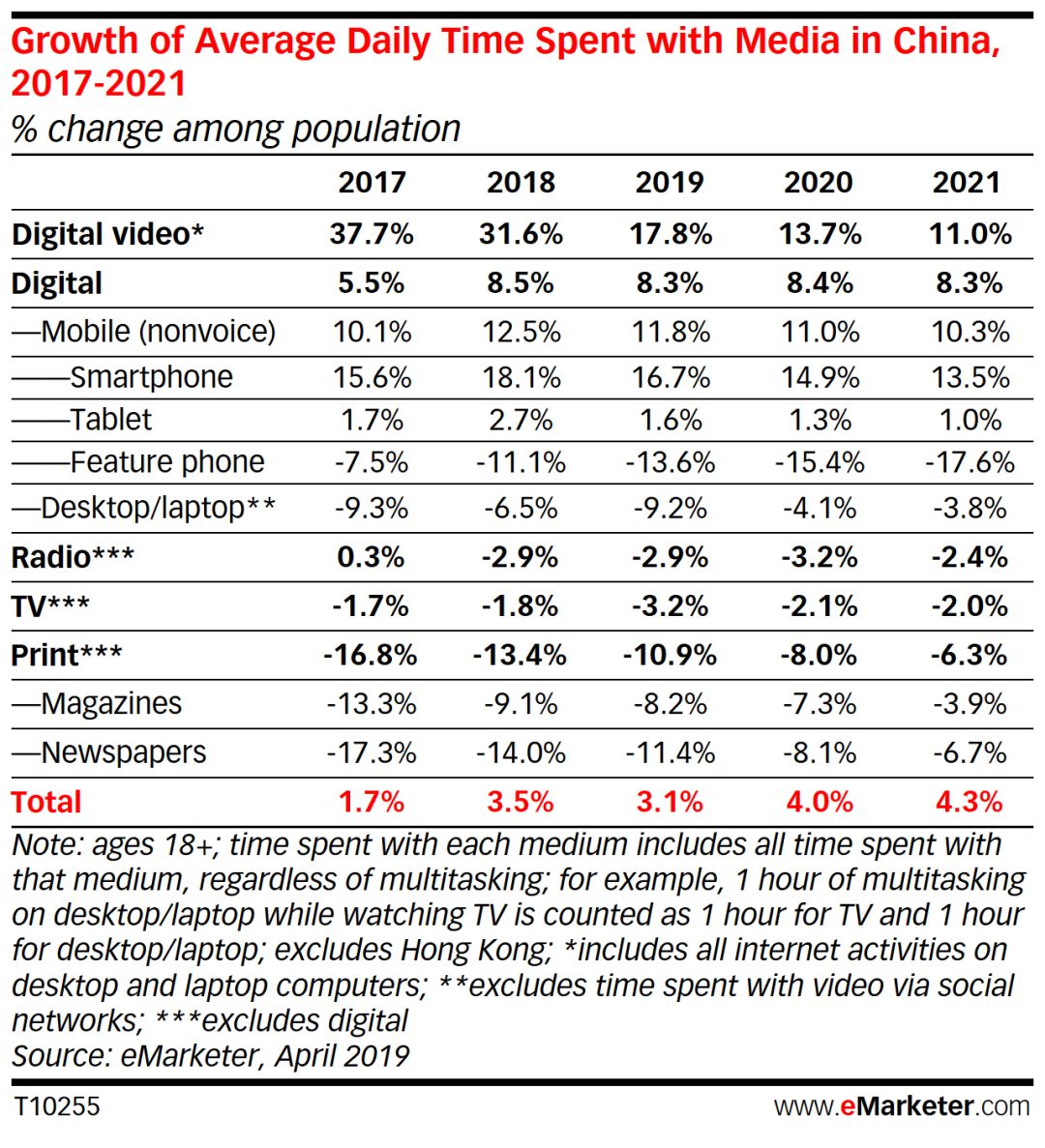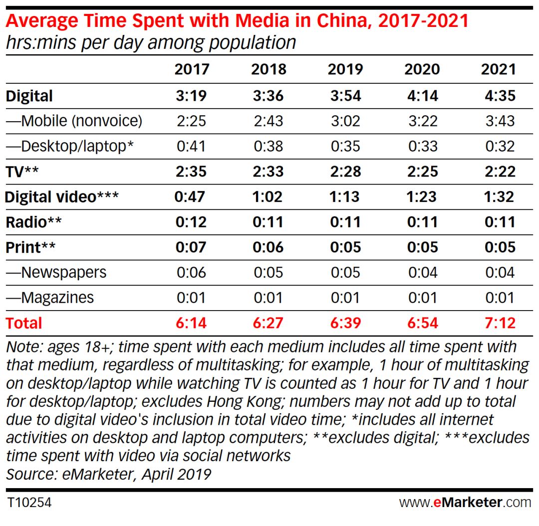 原文来源:eMarketer Time Spent with Media 2019