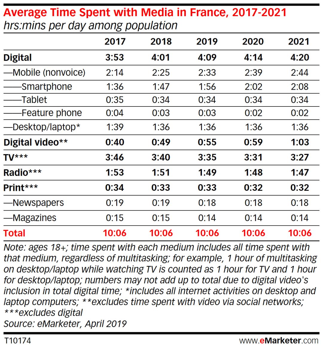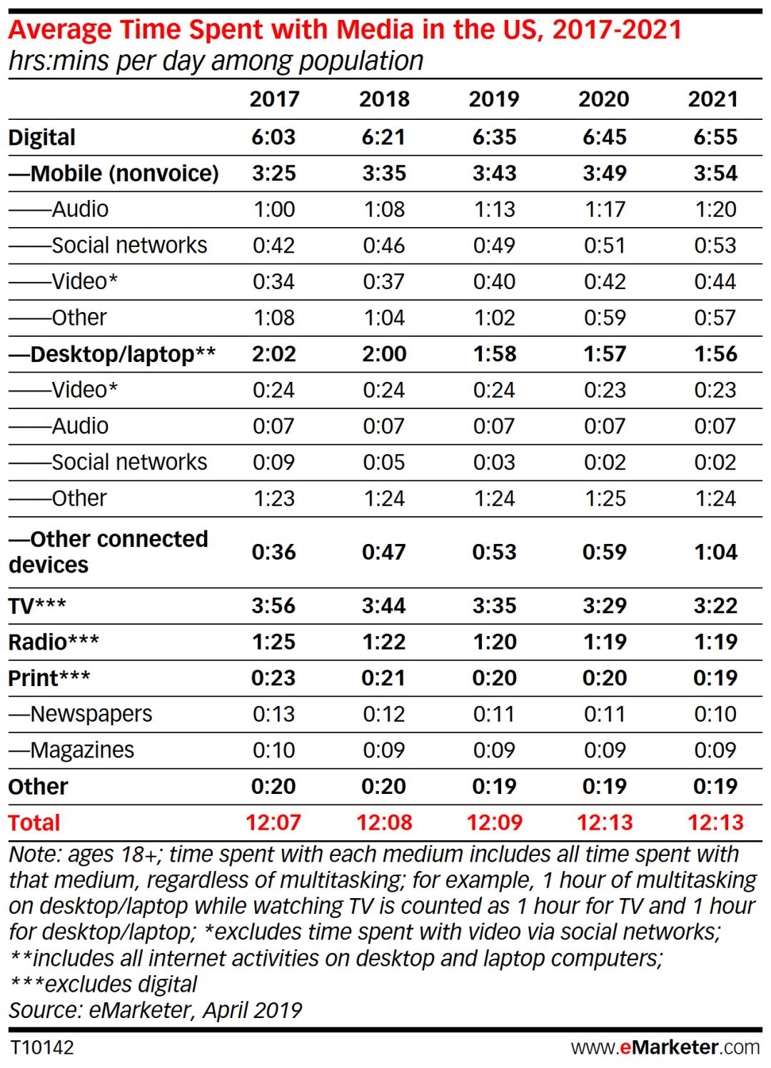 数字媒体将继续领跑排名,在2018年的基础上增长4分钟,达3:53。