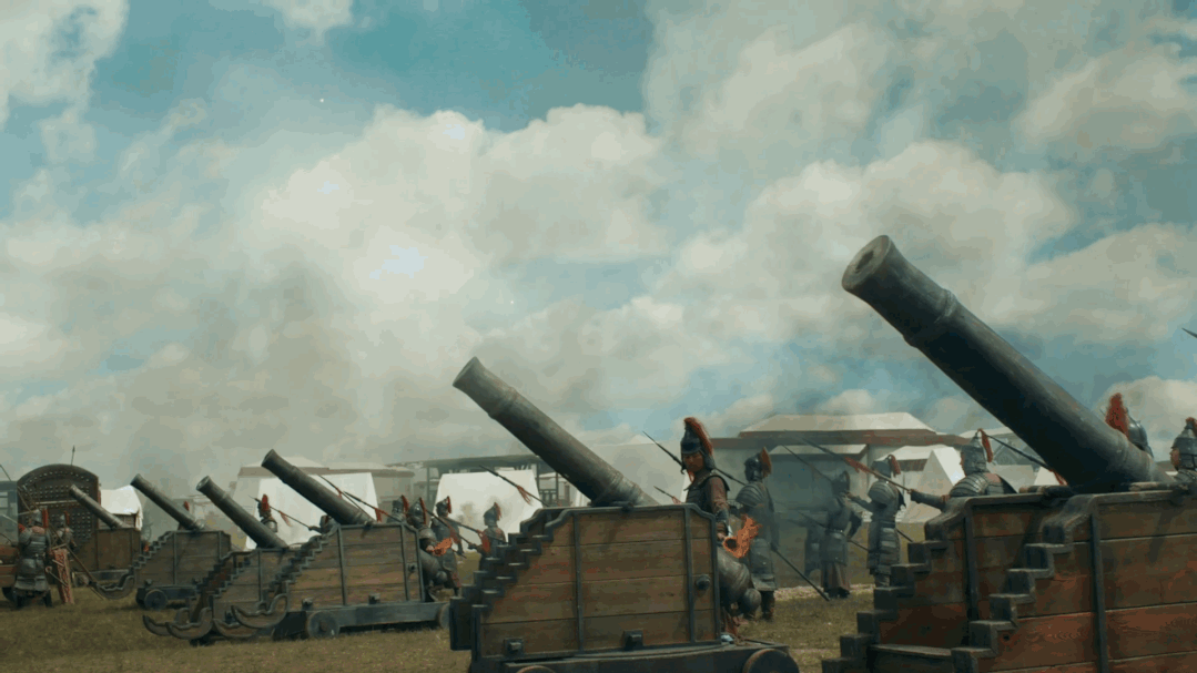 战争戏也是历史剧的重头戏,《山河月明》剧组赴内蒙古摄制的战争场面写实宏大,在视觉表达上有力度有气势。该剧第一集即以战争戏开场,征北大将军李文忠的重制火炮,齐王王保保的骑兵作战与硬弩毒烟,都能在史书中找到依据。与此同时,该剧也未忽略对战争细节的描摹。如第3集中,初出茅庐的少年朱棣,就在实战中get了“拨马粪获情报”的技能。