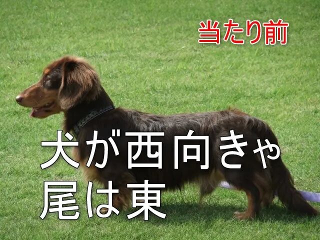 狗朝向西边,尾巴自然朝东,意为理所应当。