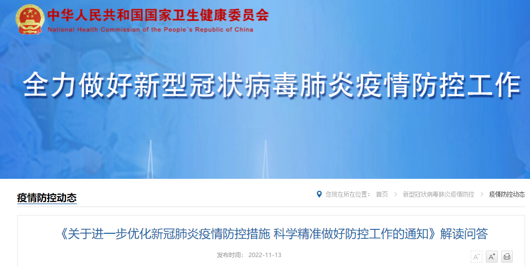 11月13日,国家卫健委网站发布,《关于进一步优化新冠肺炎疫情防控措施 科学精准做好防控工作的通知》解读问答。一、《关于进一步优化新冠肺炎疫情防控措施 科学精准做好防控工作的通知》出台的背景是什么?