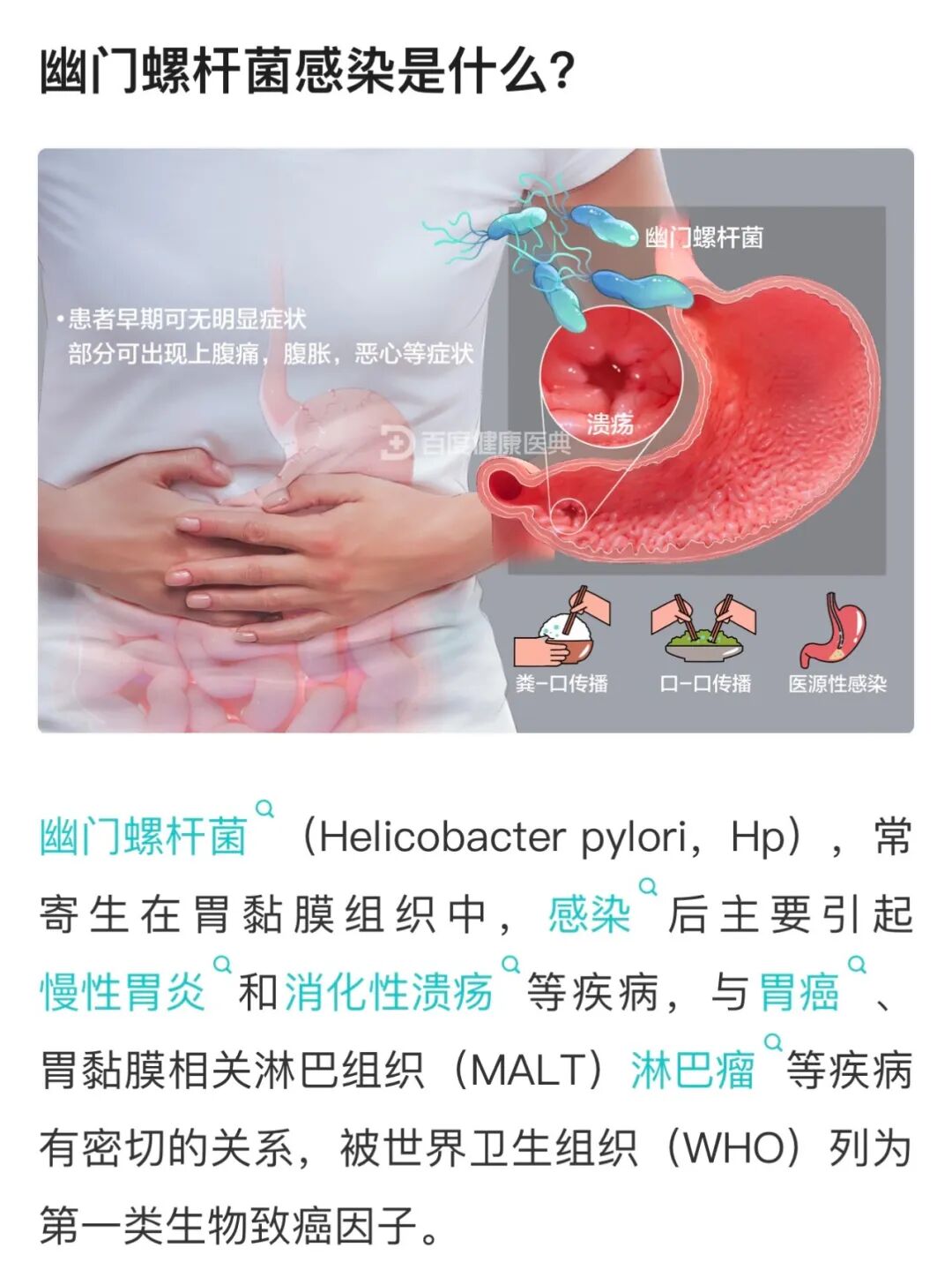 大多数人都和我一样,没啥明显症状。除非感染加重,患者才可能出现慢性上腹疼痛、反酸、晨起恶心等消化道症状。