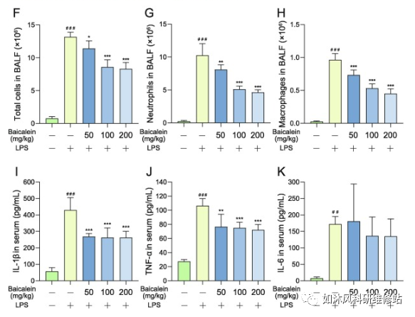 4.黄芩素减轻LPS诱导的小鼠急性肺损伤。