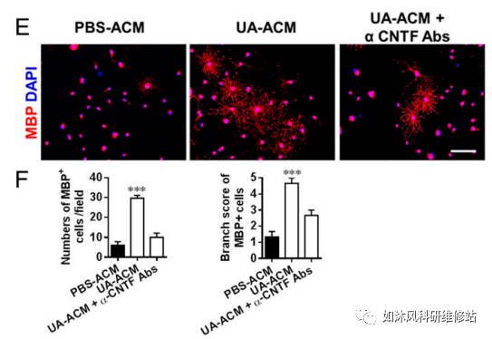 6.UA治疗后的星形胶质细胞分泌的CNTF增强了体外OPC分化。