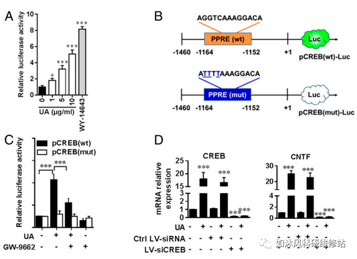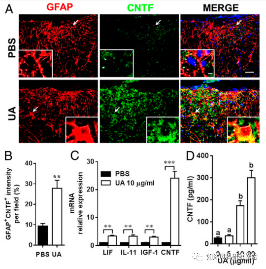 7.UA通过PPARγ/ CREB信号传导诱导星形胶质CNTF产生。