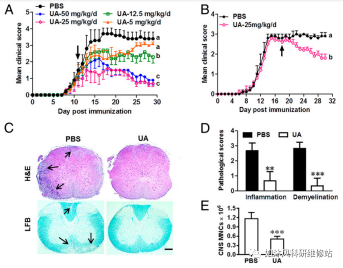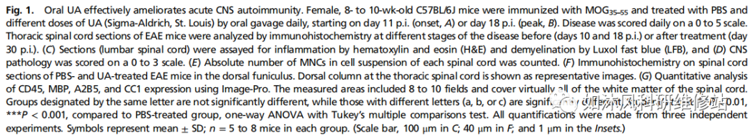 1.口服UA有效改善急性中枢神经系统自身免疫。