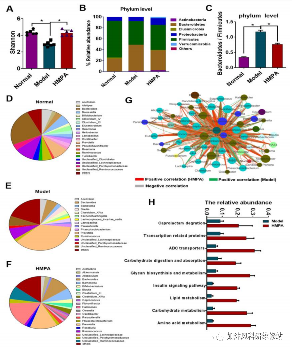 2.HMPA处理促进了HFD-STZ诱导的T2DM大鼠肠道菌群的结构和功能转变。