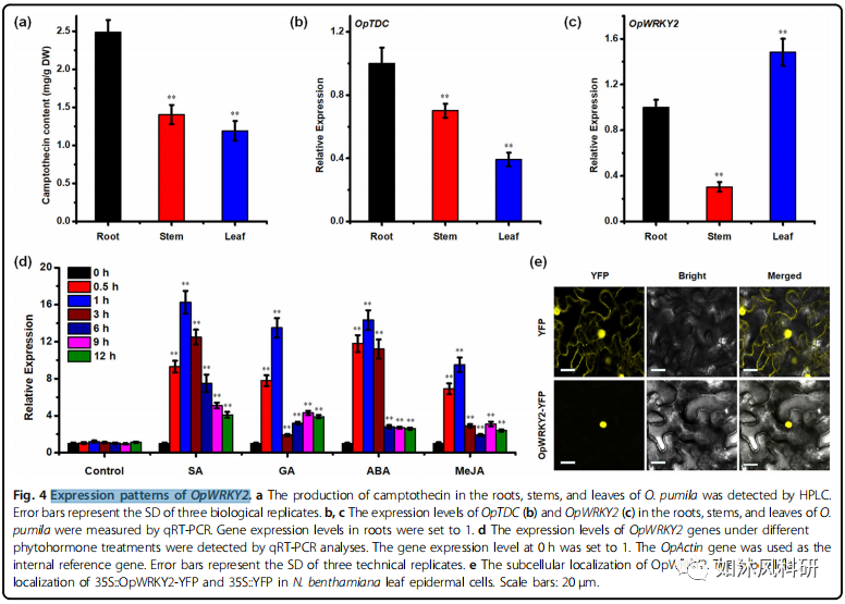 【写在前面】:今天推荐的是由浙江中医药大学团队将发表于Horticulture Research(IF5.57)新年第一期的文章,揭示转录因子OpWRKY2如何积极调节抗肿瘤药物喜树碱在短小蛇根草中的生物合成。 我们恳请:若能转发分享,我们将非常感谢!(目前微信公众号改为乱序推送,将如沐风科研设为星标,时常点击阅读,我们才会出现在您推送的前面位置)。