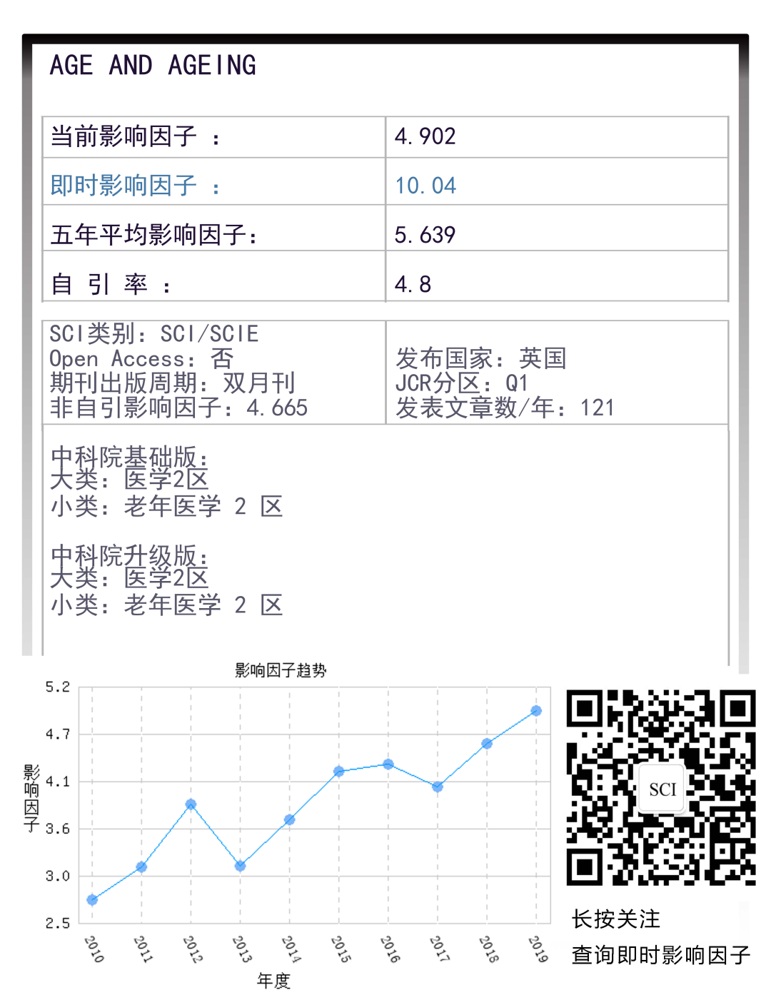 总起来说,Age and Ageing 是一本十分不错的期刊,影响因子直接加倍,发文量稳定,审稿快,对国人比较友好,也不收版面费,有需要的朋友可以准备了!