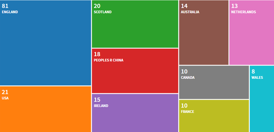可以看到,期刊的发文量近几年比较稳定,变化范围很小,发文量也不大,都在200篇以内。从2020年的统计结果来看,国人在Age and Ageing期刊的发文比例占9.474 %,排名第四,排名前三的分别是英格兰、美国、苏格兰学者。其中,国内发表数量较多的单位有:香港中文大学(3)、香港大学(3)、香港理工大学(2)等。