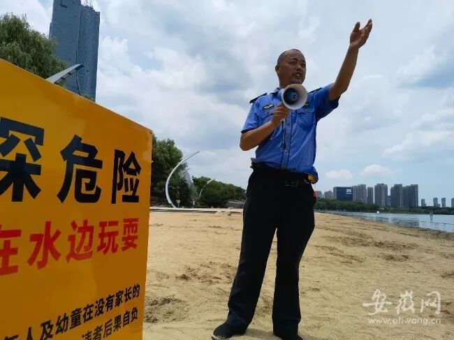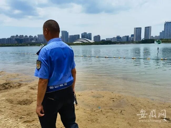 “下午1、2点的沙滩更热,大约能有6、70度,我们来回走动巡逻,十分钟衣服就湿透了。”合肥市蜀山区城市管理局天鹅湖行政执法大队一中队队长程祥斌说,为了防止中暑,他们随身携带一个2.5升的超大水杯,“基本上大家都能喝完。”因为流汗蒸发快,城管队员们守湖的6个小时,2.5升水都不够喝,大队还会为大家送去矿泉水、冷饮等,帮助队员们防暑降温。