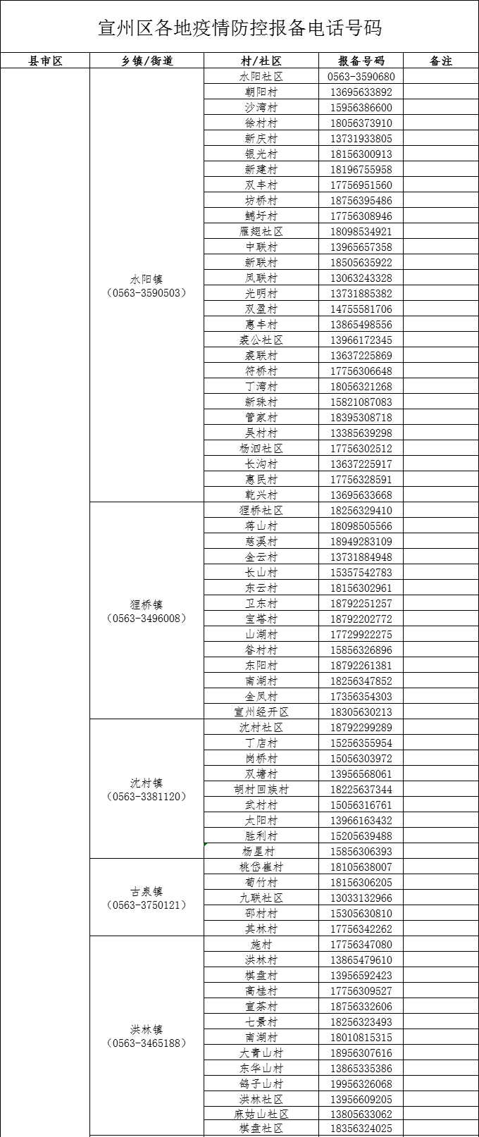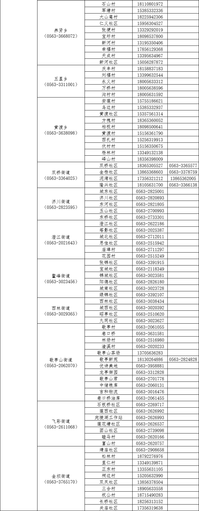 为方便全区所有居民与所在乡镇(街道)或村(社区)取得联系,现公布全区乡镇(街道)及村(社区)的疫情防控报备电话。
