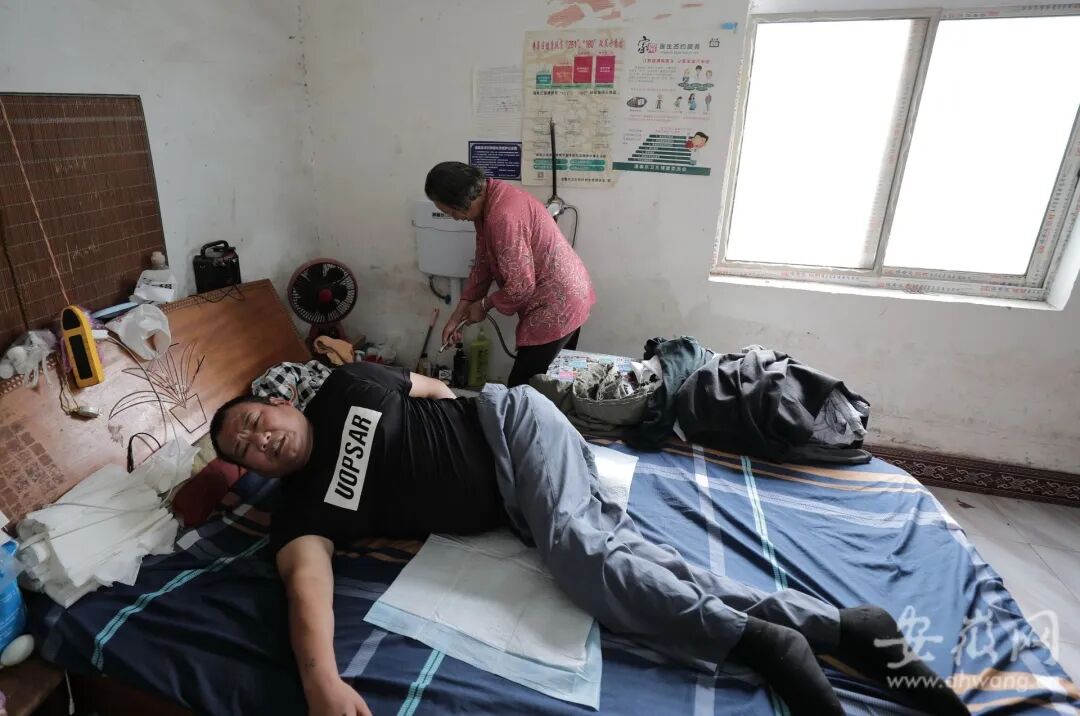 安云锋生活不能自理,一天三顿饭要靠母亲端到床前。因为没有知觉,不知何时就大小便了,他的裤子和床单也全靠母亲来帮着清理换洗。