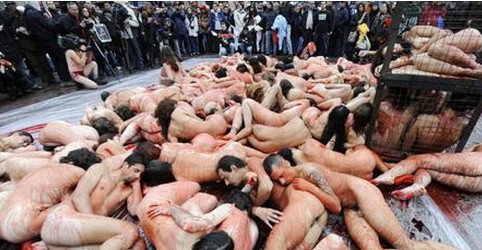 在《奢华美丽背后的残忍》的视频中,有狐狸、浣熊被人用木棍、铁棍敲击头部,或抓住它们尾部举起往地上重摔,这些动物还未断气,屠宰场工人立即展开剥皮动作。从视频中可以看到,剥皮过程中,浣熊和狐狸仍不断哀嚎、挣扎,鲜血四溅,直到全身毛皮被剥光,血肉模糊之后还有呼吸、心跳、眼睛不断眨动流泪,甚至还挣扎着回头看自己的身体……视频中,还有水貂、獭兔等小动物被杀的场面,该视频最后还利用字幕作出一番解释:一件貂皮大衣至少需要大约七八十只水貂……