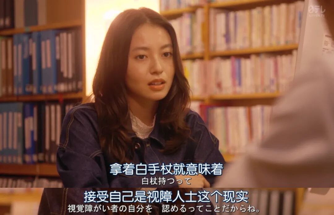 故事的女主赤座雪子(杉咲花 饰),就是每天都要依赖白手杖出行的那个女孩。