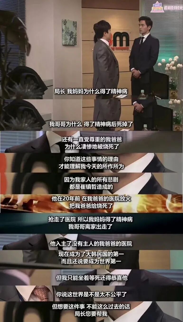 20年前,崔镇哲放火烧了他父亲的医院,他父亲被烧死了,又抢走了医院;