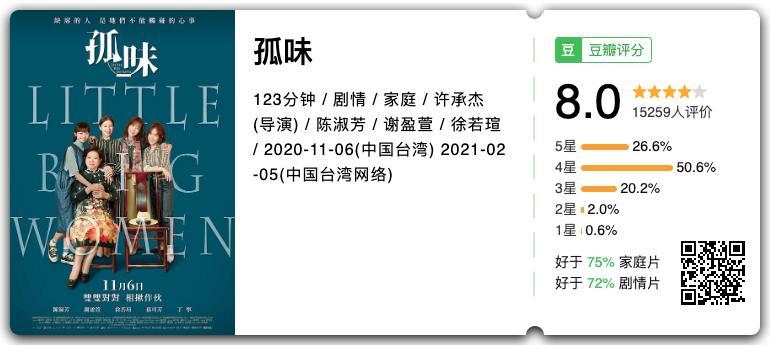 《孤味》改编自导演许承杰四年前的同名短片,并摘得2020年台湾本土的年度票房冠军。
