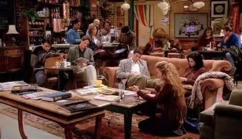 记得剧集中有一个桥段,六个人没事坐在沙发上,看着各自手里的报纸杂志。