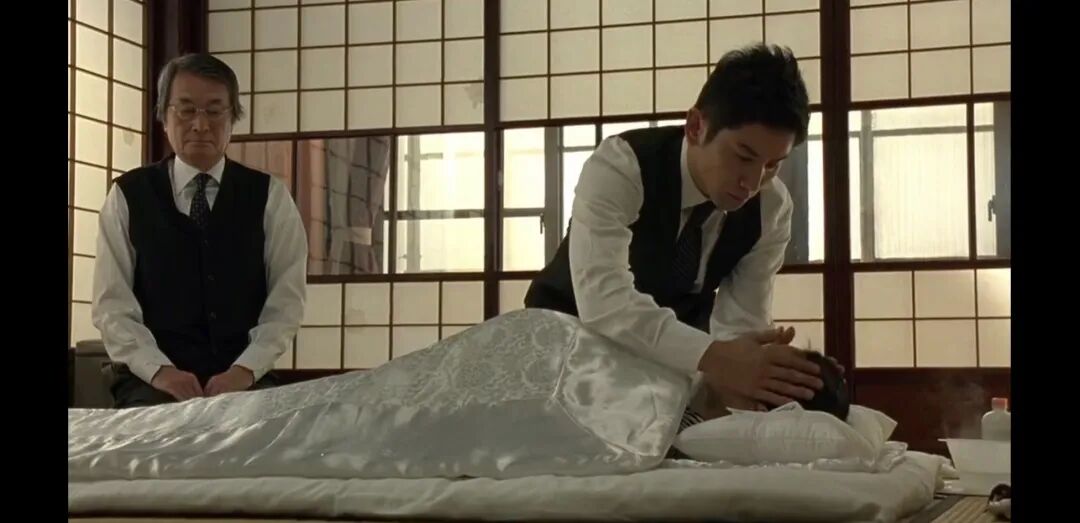 在一顿追问之下,社长才漫不经心地告诉大悟,工作的内容是纳棺的,即在死者去世后把遗体放进棺木里。