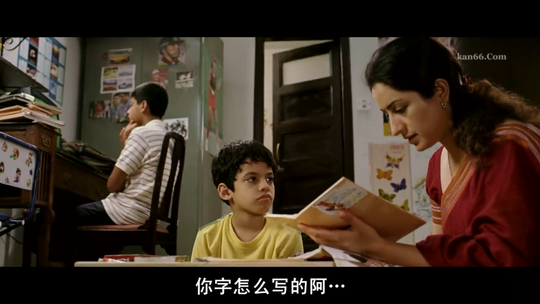 行为——在整理自己的书本、纸张、玩具时显得有困难,写字时很难掌握空间距离;手脚笨拙,走路时脚步不稳,经常跌倒、被绊倒或撞倒家具;同一时间对所有的声音、人、事同时作反应,不懂得在同一时间对某一件事作反应。不过矛盾的是,阅读障碍患者并不能与笨小孩画等号,相反一些患者智商极高,甚至包括天才型的人,爱因斯坦、达芬奇、爱迪生小时候都患有阅读障碍。这就更让人们无法理解聪明孩子却不能识字和阅读,如果不了解这种病,很可能会冤枉了这群特殊的孩子,并且耽误了矫正。虽然在谈教育,但整部电影依然有着印度电影诙谐活泼的风格,在音乐和动画中开场,用幽默的方式来揭露教育的问题:一切只看成绩。满屏混乱的字母和数字中,老师在宣读考试成绩,念到高分学生就欣慰地一笑,念到低分时就满脸嫌弃。显然,我们的电影主角伊夏就是成绩最差的那一个。其实伊夏是个想象力超群的孩子,他能在脑海中想象出很多奇妙的画面,并用绘画的方式表达出来,他对生命充满好奇,热爱大自然和动物。不幸的是,他患有阅读障碍,不能识别字母,无法阅读字句。这毕竟不是童话世界而是一个残酷竞争的世界,父母老师都想培养出学霸,大家看重的只有考试成绩。伊夏偏偏还有个学霸哥哥,经常考全校第一的那种。在学霸哥哥的衬托下,伊夏的表现就显得更加糟糕,这也让严厉的爸爸对伊夏更是看不顺眼。