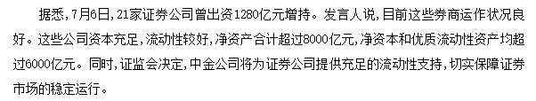 5.证监会再推两条救市措施:一是限制股东和高管通过二级市场减持,二是要求已经减持的大股东及高管增持股票,共克时艰。