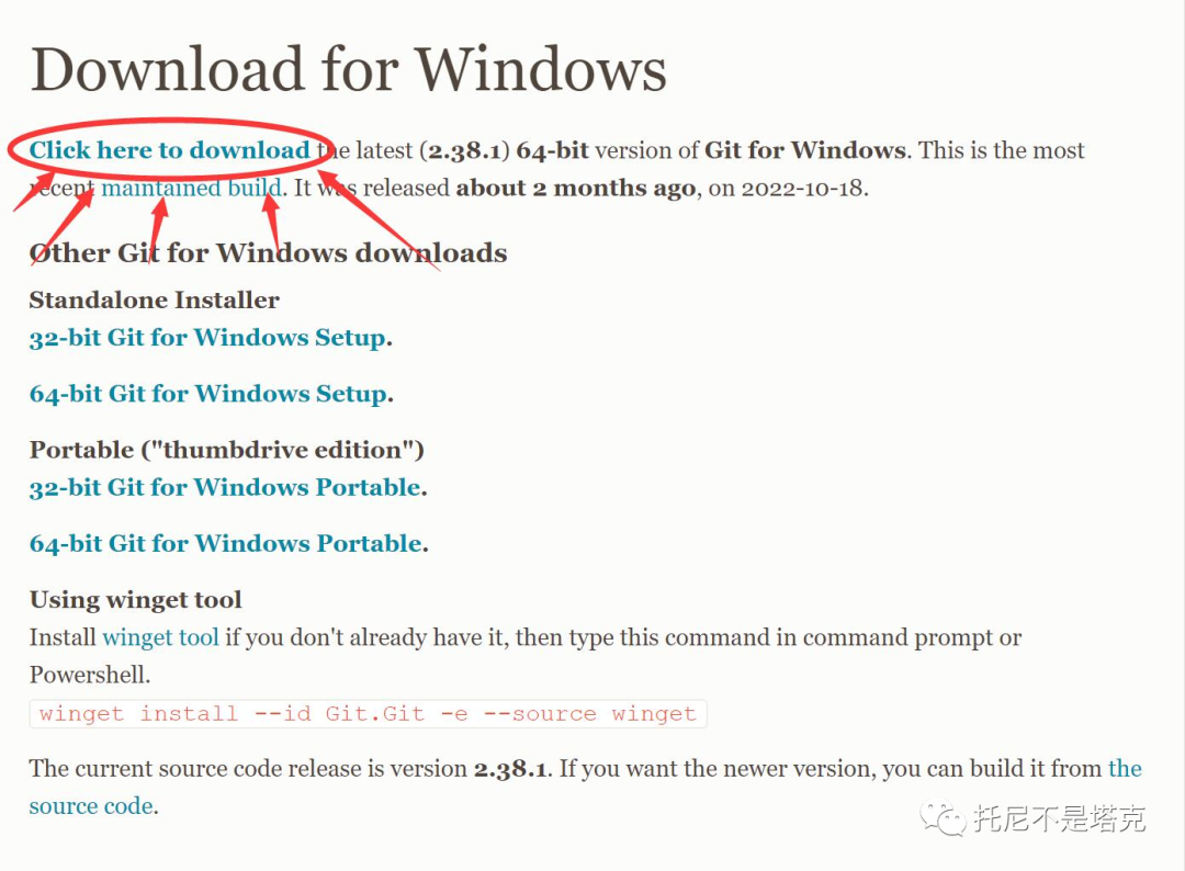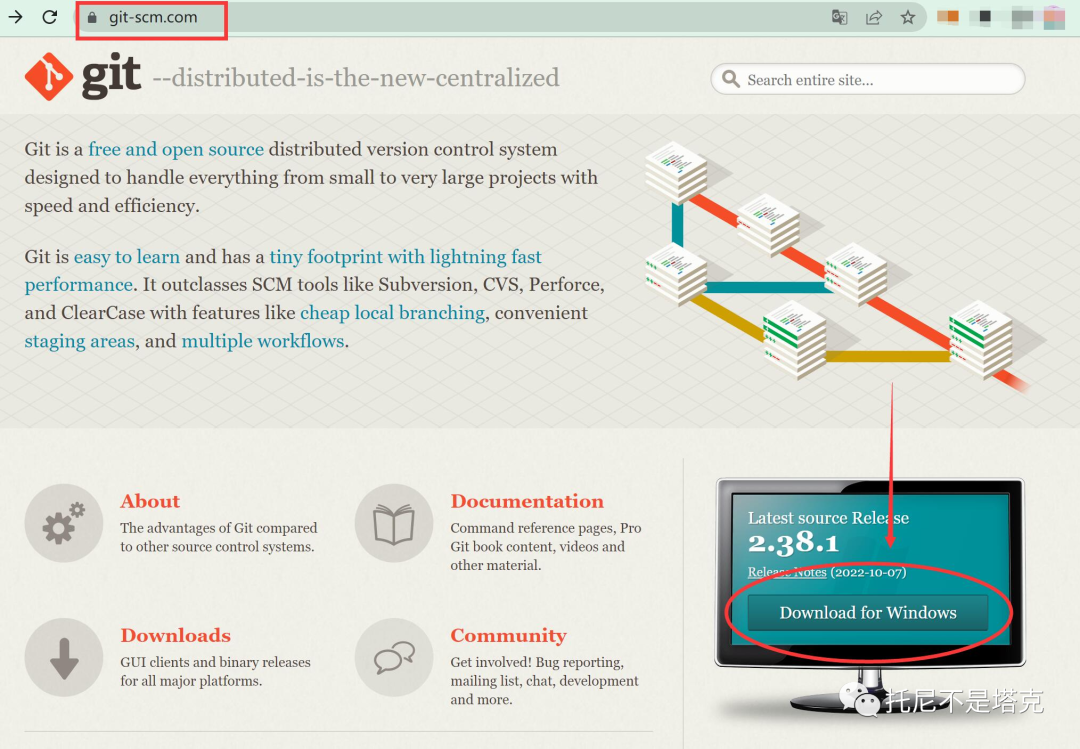 git的下载非常简单,只要打开git-scm.com然后找到"Download for Windows" 点击一下,进入下载页面。