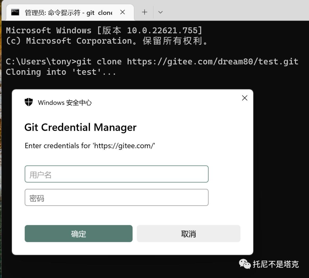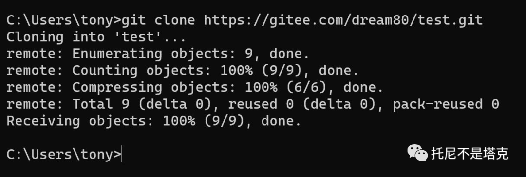 下面一行是去github上克隆(下载)一个叫test的项目。