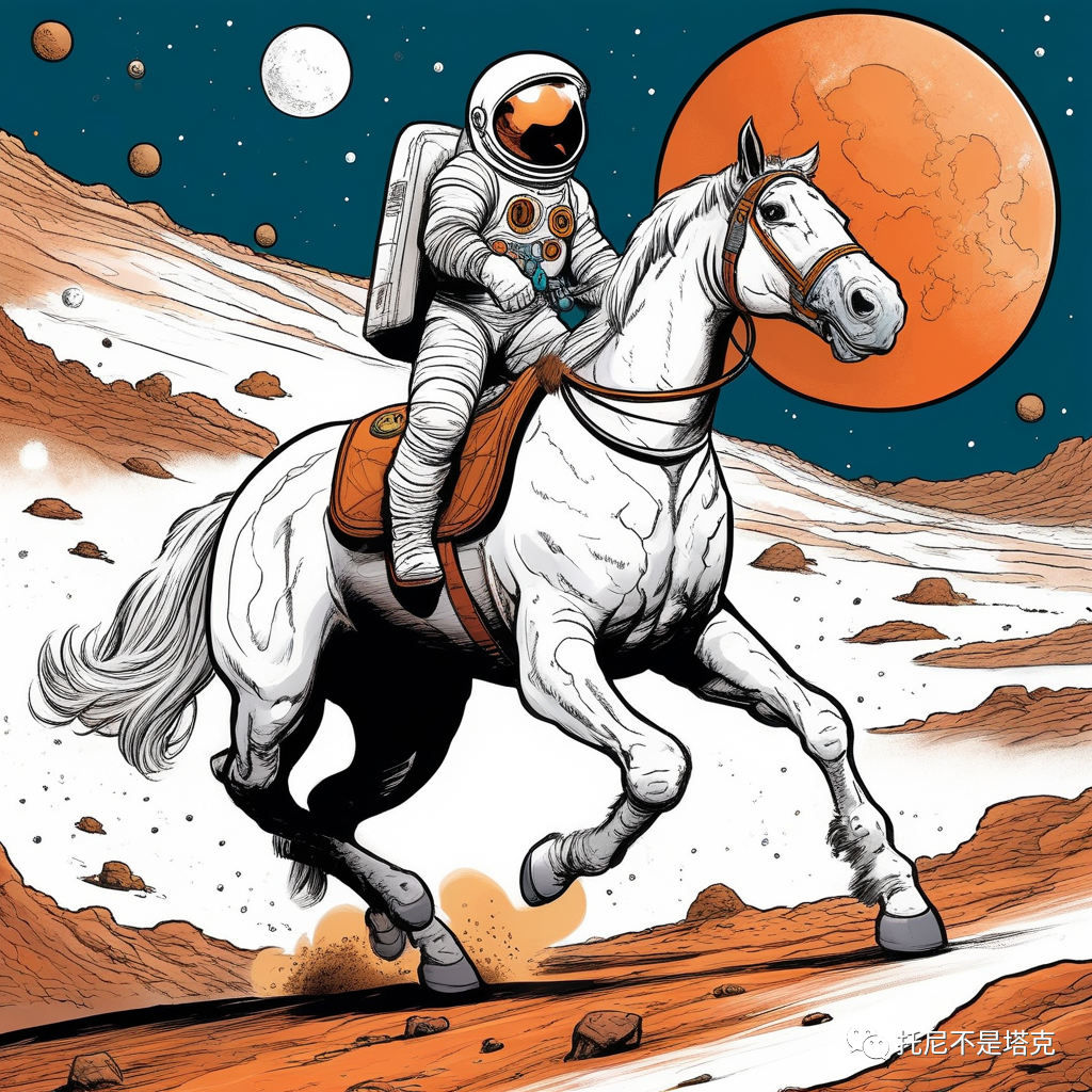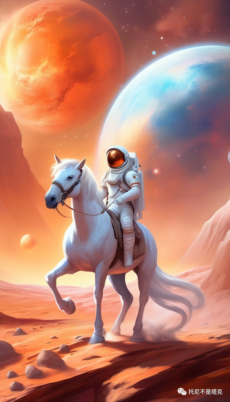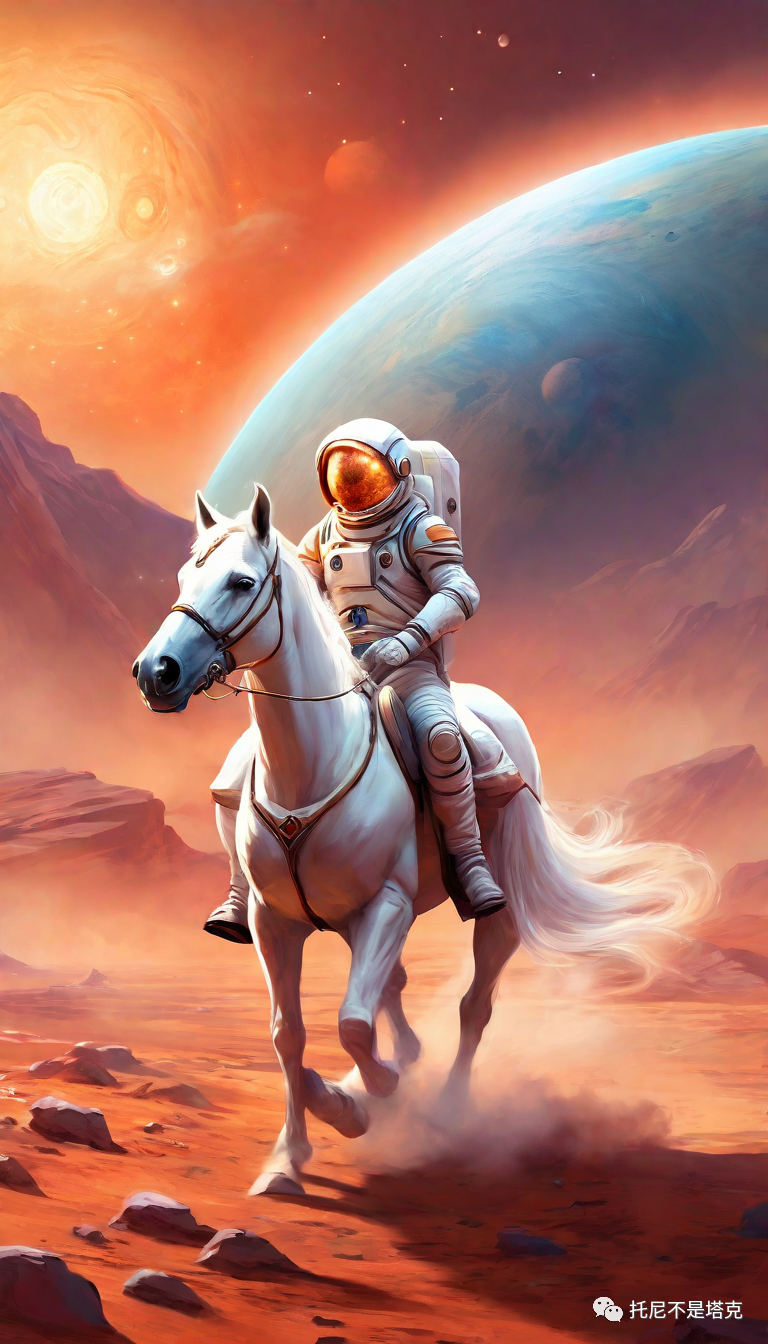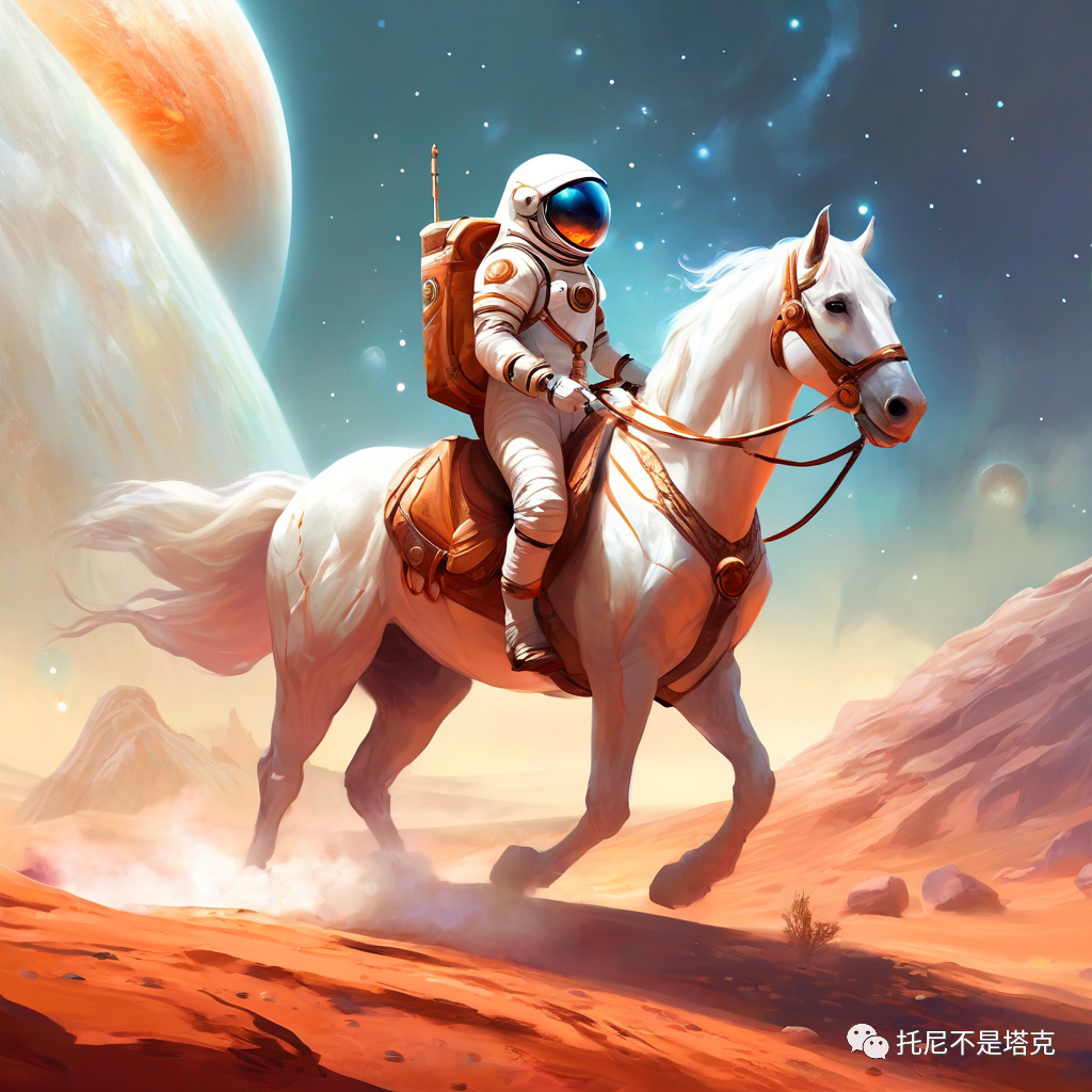 An astronaut on a white horse on Mars每一个风格两张照片!几乎都是一次搞定,没有去抽第二次第三次。