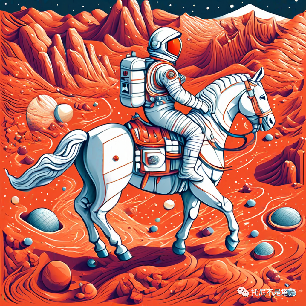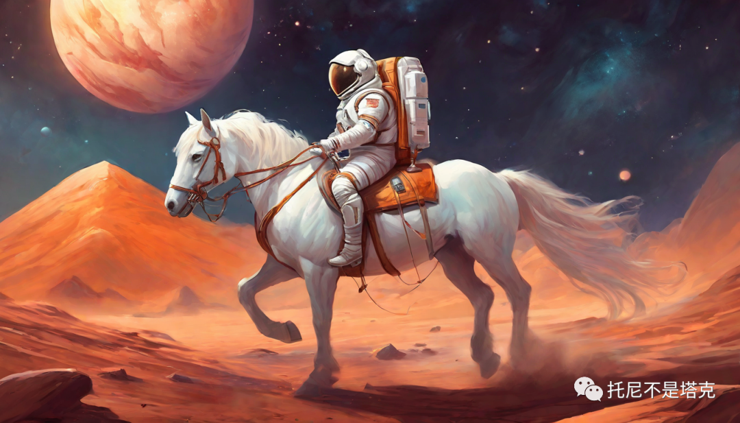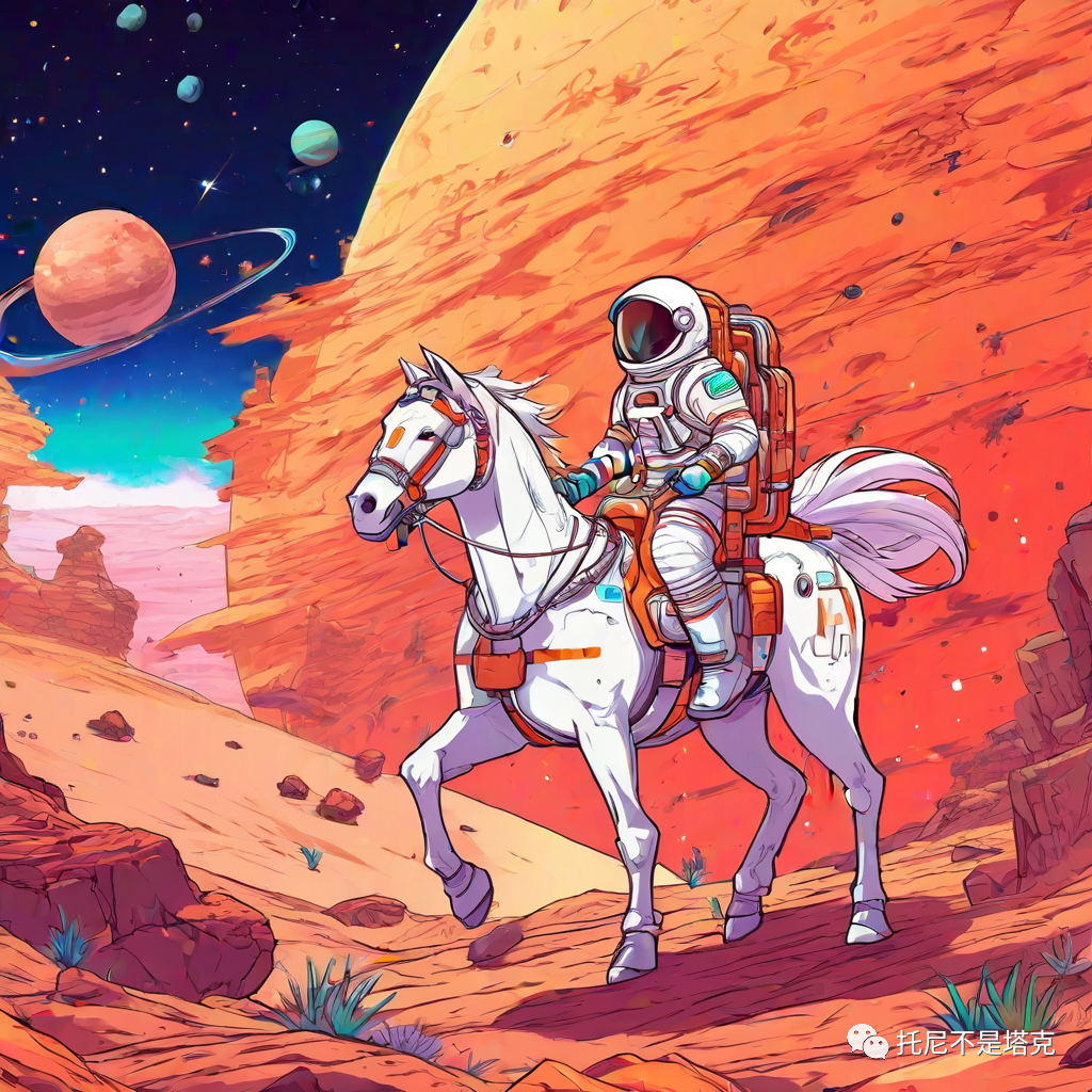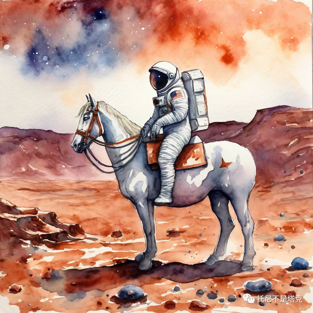An astronaut on a white horse on Mars每一个风格两张照片!几乎都是一次搞定,没有去抽第二次第三次。