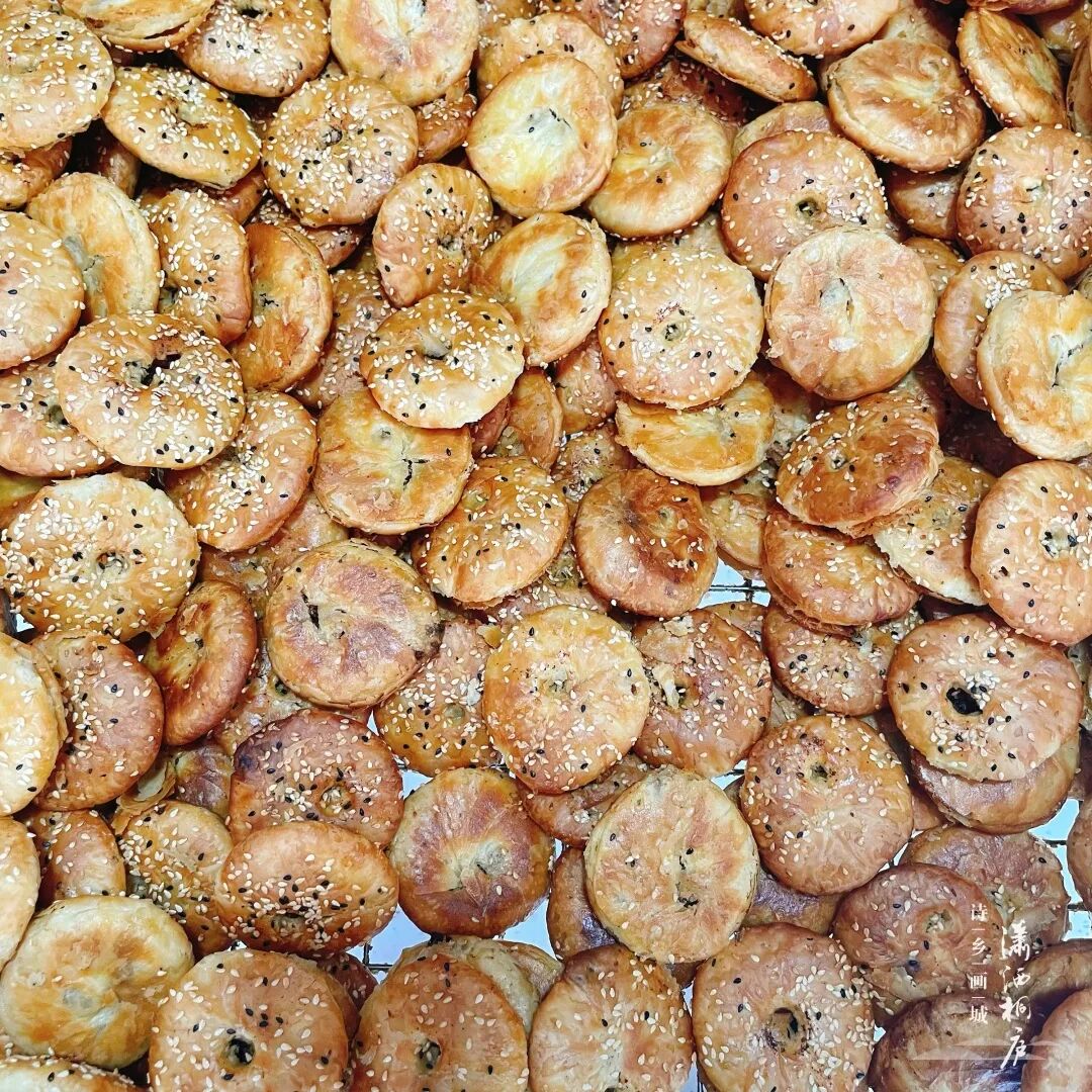 新鲜出炉的酥饼,表面金黄,轻轻一掰开,千层的酥皮就酥到掉渣,露出满满的馅料,能看到酱黑的梅干菜和被烤的冒油的肥肉粒,香味扑鼻!咬一口能感觉到外皮的层层松脆,口感绝了,这一口幸福感爆棚!梅干菜的陈香,猪肉的鲜香,芝麻的清香,好吃到停不下来,店里有大酥饼和小酥饼,还有专门的礼盒包装哦~上班饿的时候打开抽屉,可以拿出来补补能量,解解馋,一口一个,不容易被老板发现。