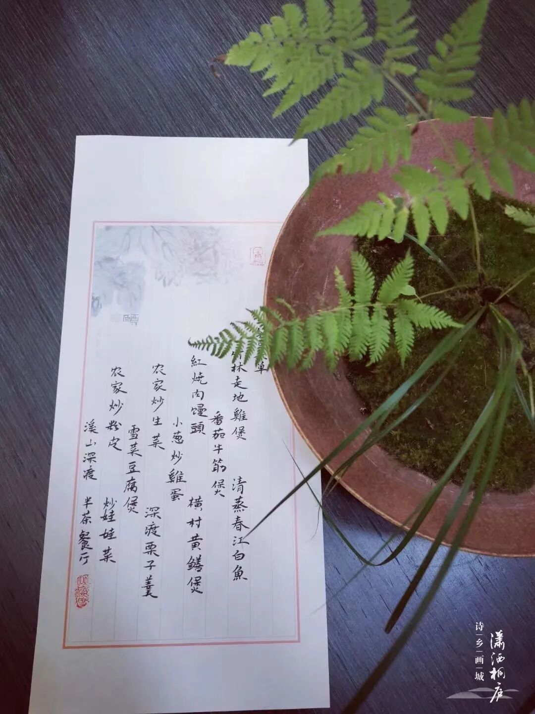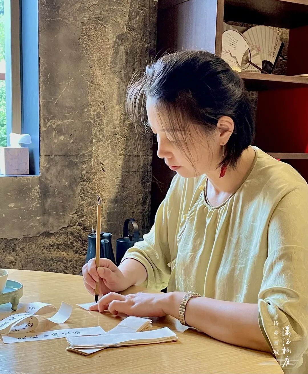 她是江苏常熟人,桐庐媳妇,跟随先生来到了桐庐。常熟的书画氛围浓重,她自小也喜欢文艺,热爱写写画画。开民宿之前,她开建材公司,为开发商做配套,生意也做得好,一空下来就是写字画画。她的书法,练了快二十年。