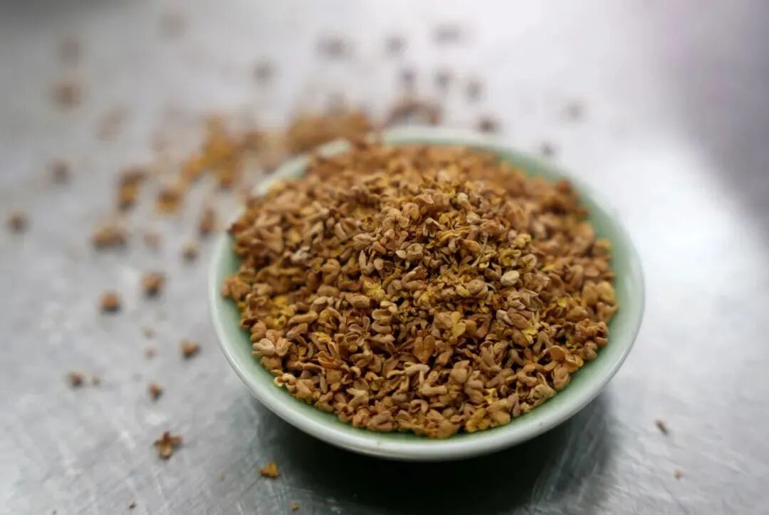 用纱布包好一定量的桂花干,在水中浸泡一会,煮开后小火煮上一小时,等到水的颜色变成褐色,还飘出浓浓的桂花味。