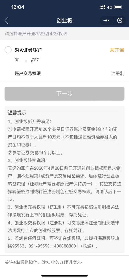 已开通深市A股账户的客户,可通过“业务办理-创业板”新开或转签创业板交易权限。![]()