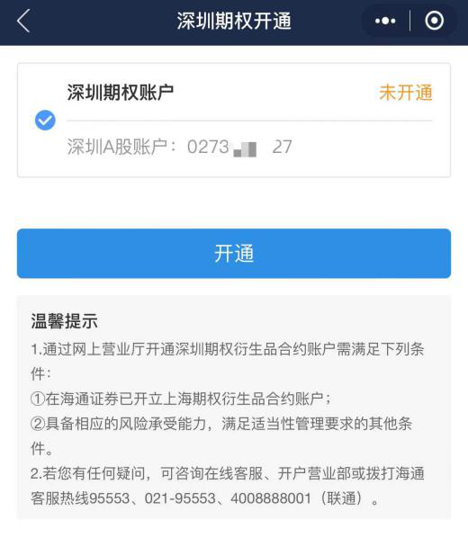 若已开通沪市期权账户,可以通过“业务办理—深圳期权开通”申请开通深交所股票期权账户。![]()