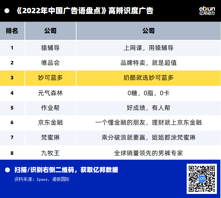 “当消费需求被激发,作为新品牌必须保证自己第一个被选择”。哈佛心理学博士乔治·米勒认为,在每一种产品类别里,用户最多只能记住七个品牌。而定位之父杰克·特劳特更直截了当,他认为用户最多只能记住两个品牌。显然,妙可蓝多也是这样认为的。2019年2月18日,妙可蓝多的广告开始密集出现在央视及多个地方卫视的黄金时段。随后,在北上广深等16个主要城市的电梯里,根据儿歌《两只老虎》改编的妙可蓝多奶酪棒15秒广告滚动播放,频率达到每天480次。![]()