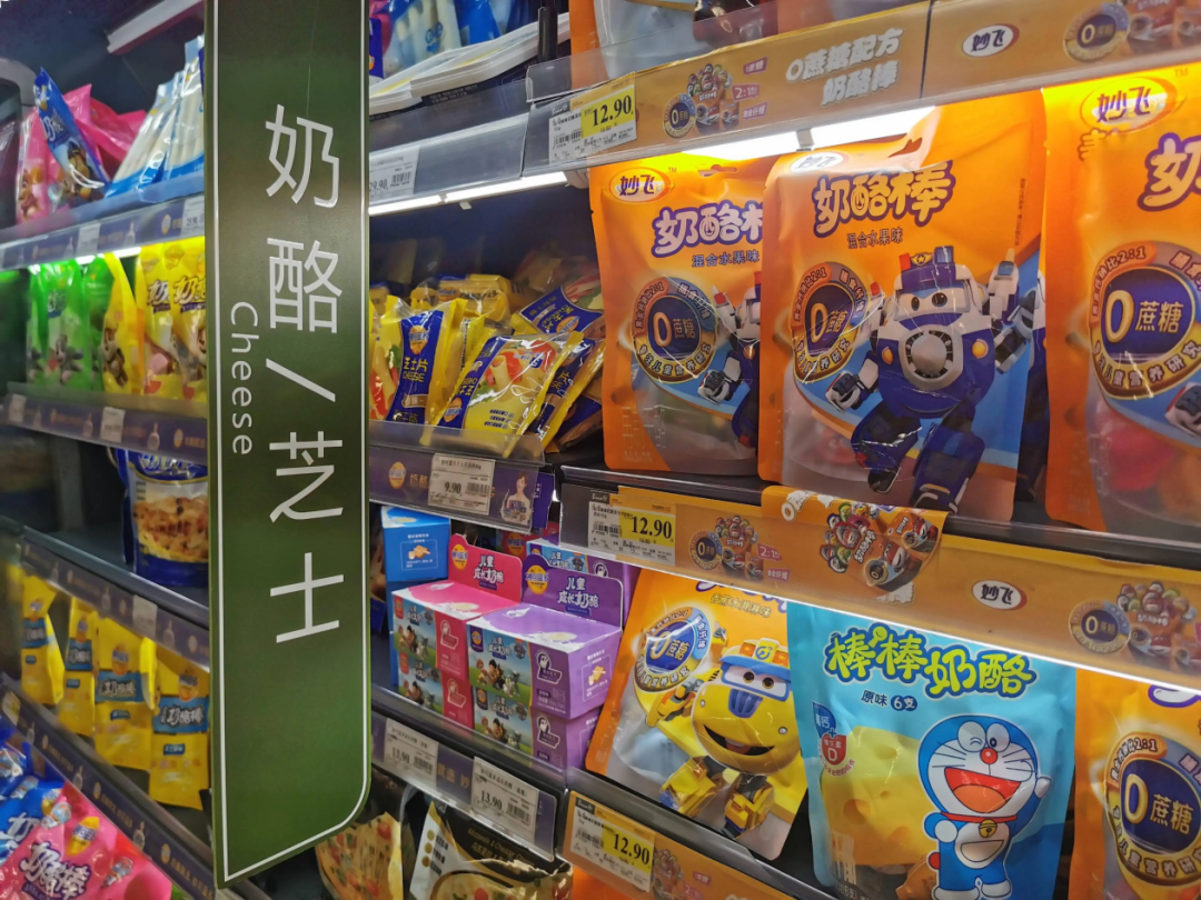 入局奶酪的品牌层出不穷:从伊利、蒙牛、光明等乳业巨头,到妙飞、奶酪博士、吉士汀等新锐品牌,甚至永辉、盒马等零售渠道也跨界搅局。打开天猫搜索“奶酪”一词,就有至少95个品牌可供选择。如果你最近逛过超市,会惊奇的发现,儿童奶酪棒像极了当年的共享单车大战,彼时是“颜色不够用了”,现在是“卡通形象不够用了”——妙可蓝多汪汪队、百吉福哆啦A梦、伊利迪士尼、蒙牛熊出没、妙飞超级飞侠.......当然各家品牌也试图在产品上做足差异化,有人主打“少糖高蛋白”,有人瞄准“0蔗糖”,等等不一而足。![]()