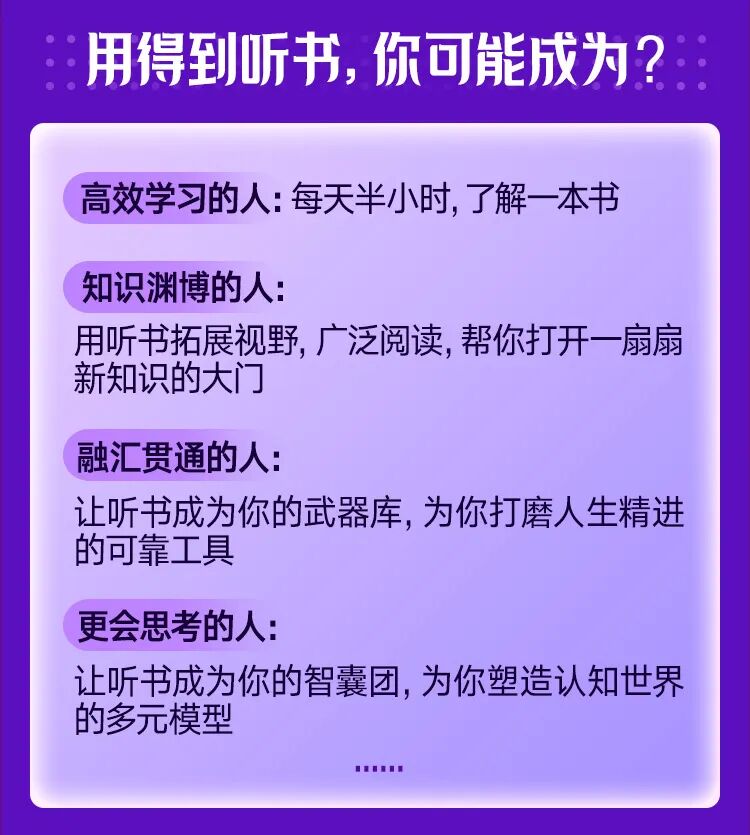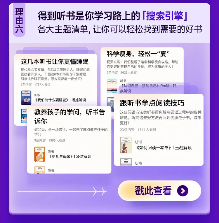 如果你还没有加入「得到听书」,借此机会向你再介绍一下,除了收获新知、拓展视野,你还能通过「得到听书」获得什么?还有哪些新玩儿法等你去解锁呢?