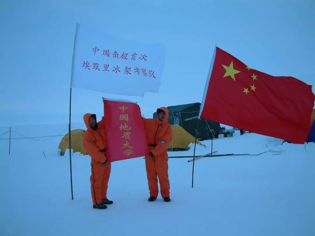 邓世坤(左)在南极埃默里冰架科考 屠傲凌 供图