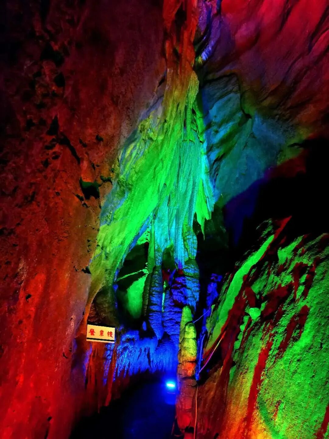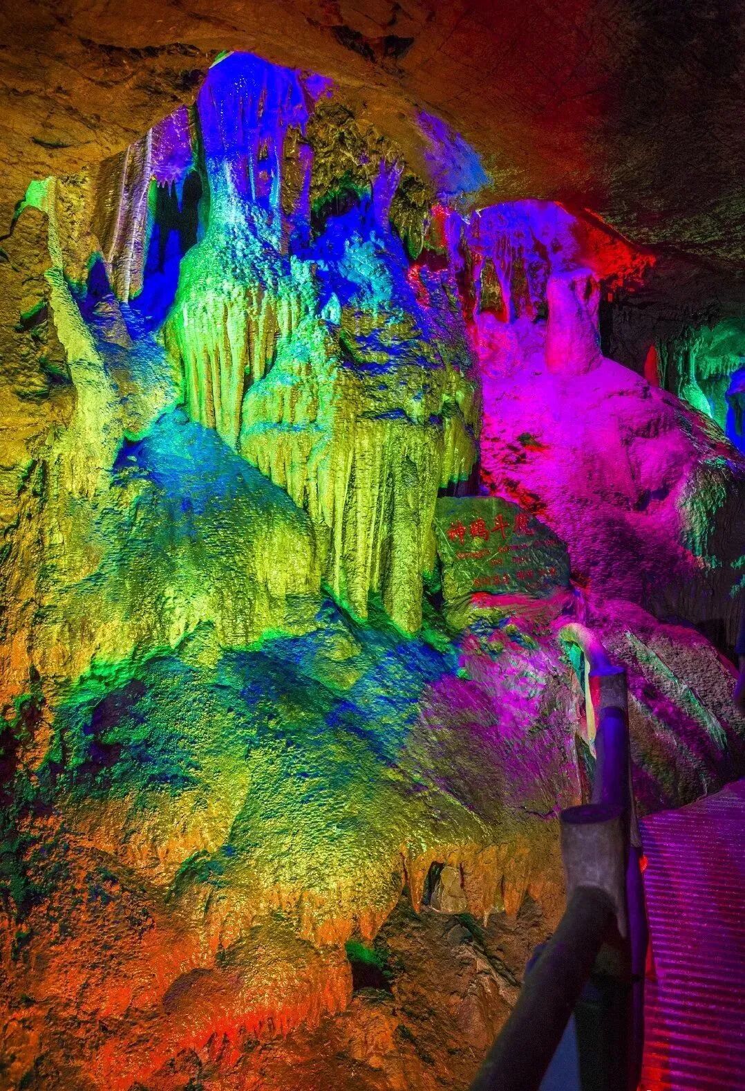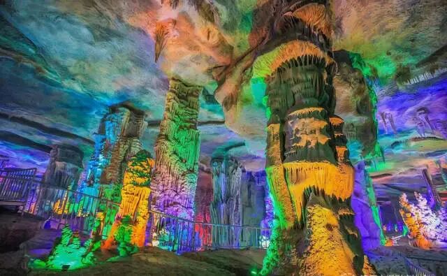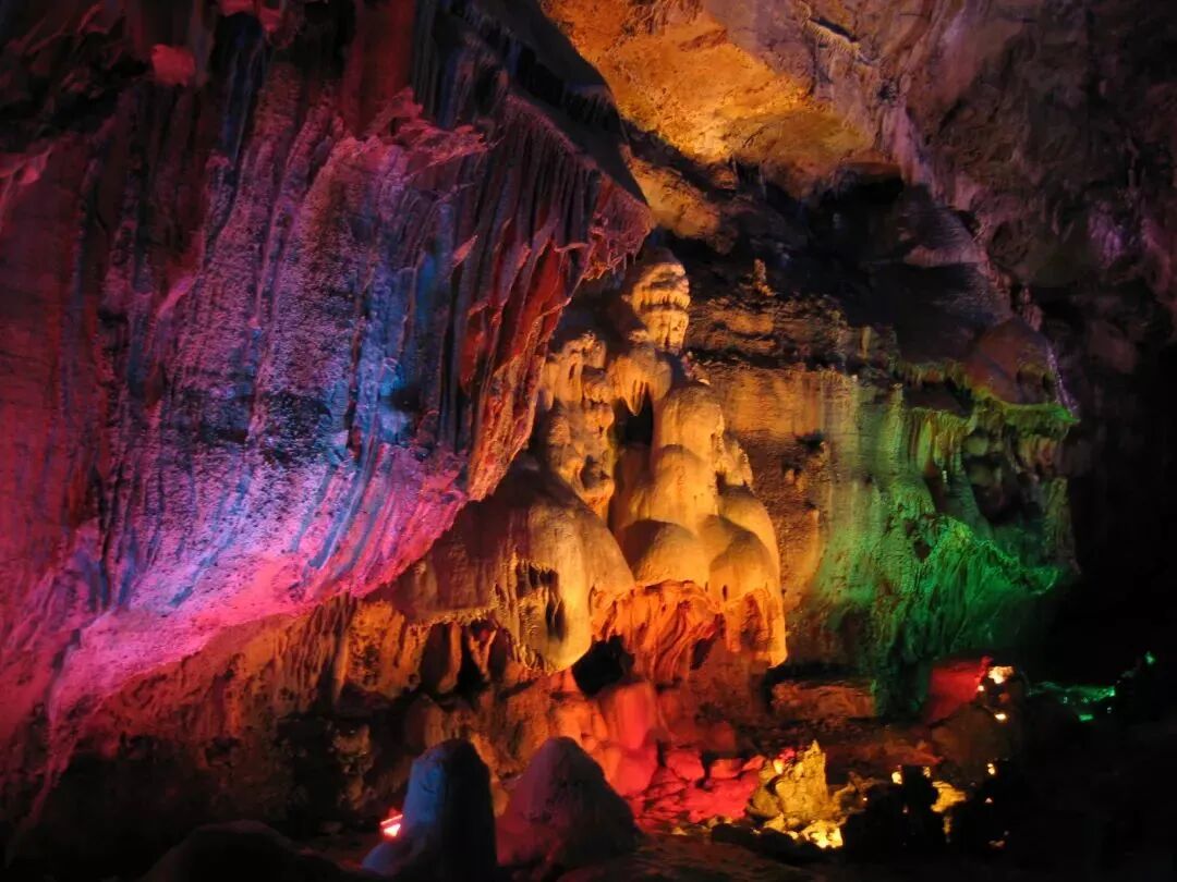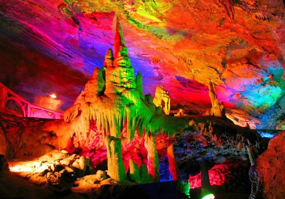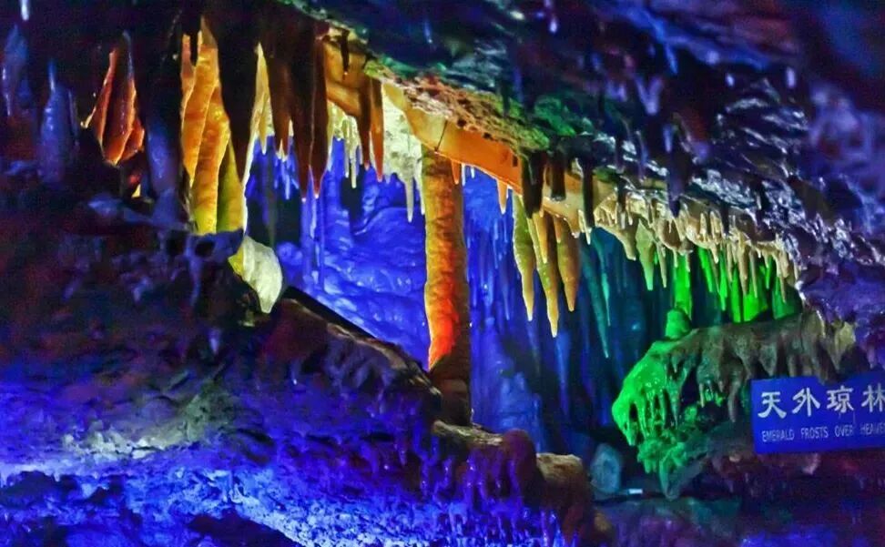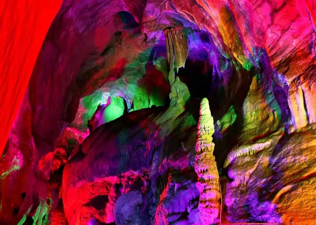 整个画廊气势磅礴,五彩的灯光恰到好处地点缀其间,石乳、石笋、石柱、石幔、石帘、飞瀑等各类象形钟乳石,参差错落、千姿百态,向人们展示着一幅幅百万年来,从未示人的神秘自然地理画卷。