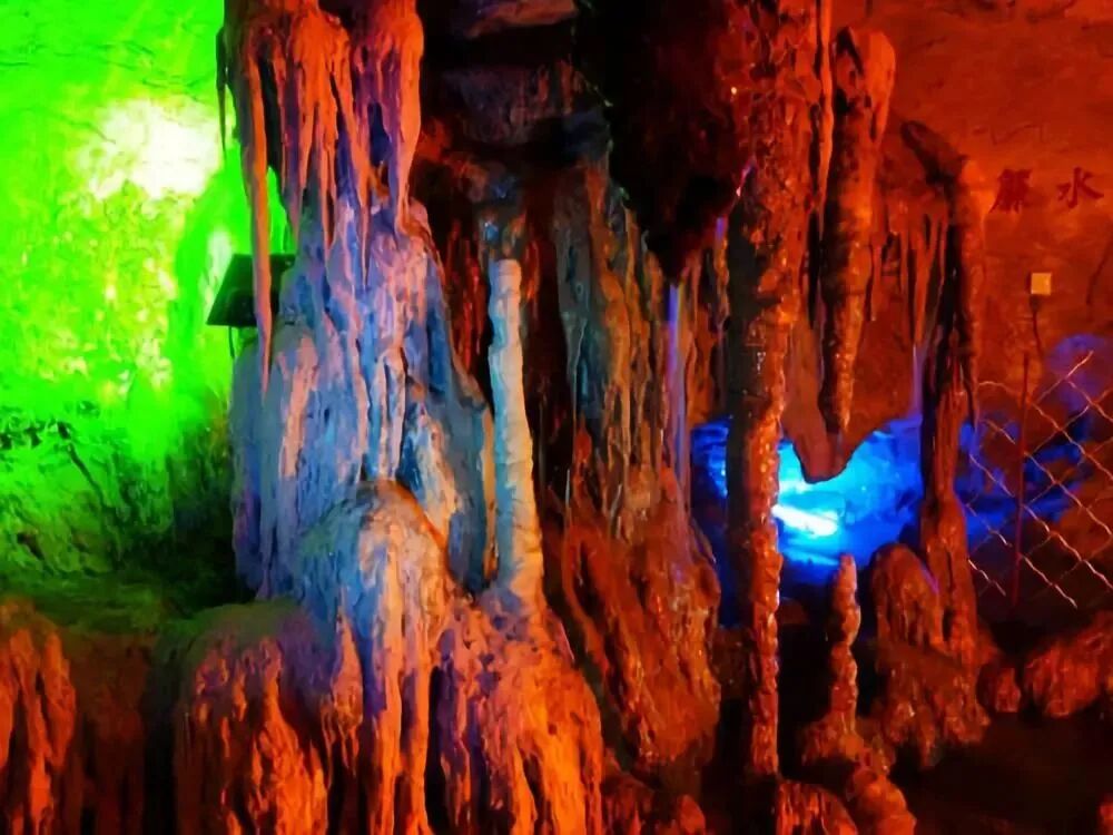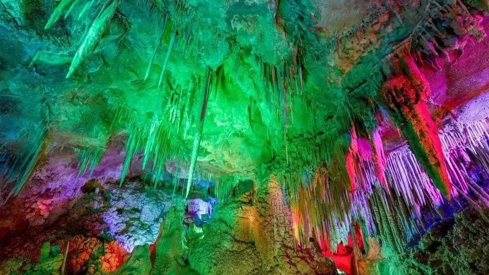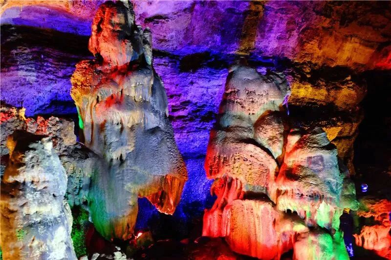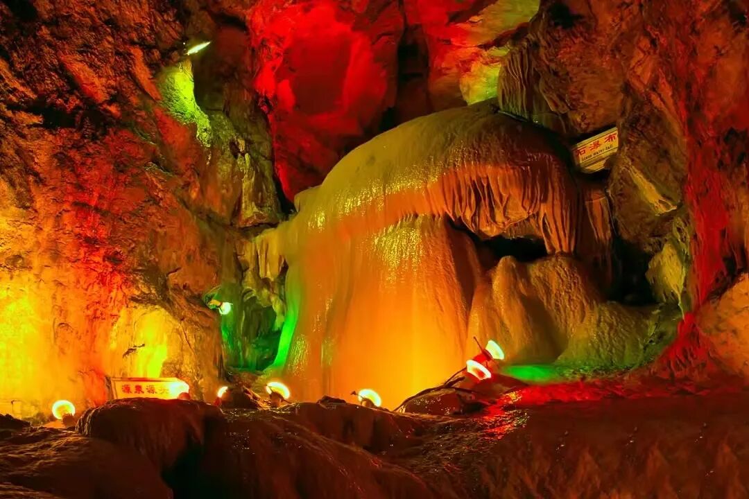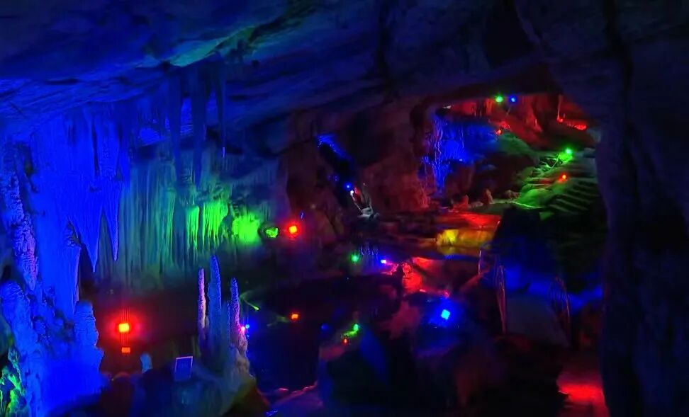 千奇百怪、形状各异的钟乳石在五彩的灯光下变得绚丽多姿,被誉为“鲁中山水画廊”。