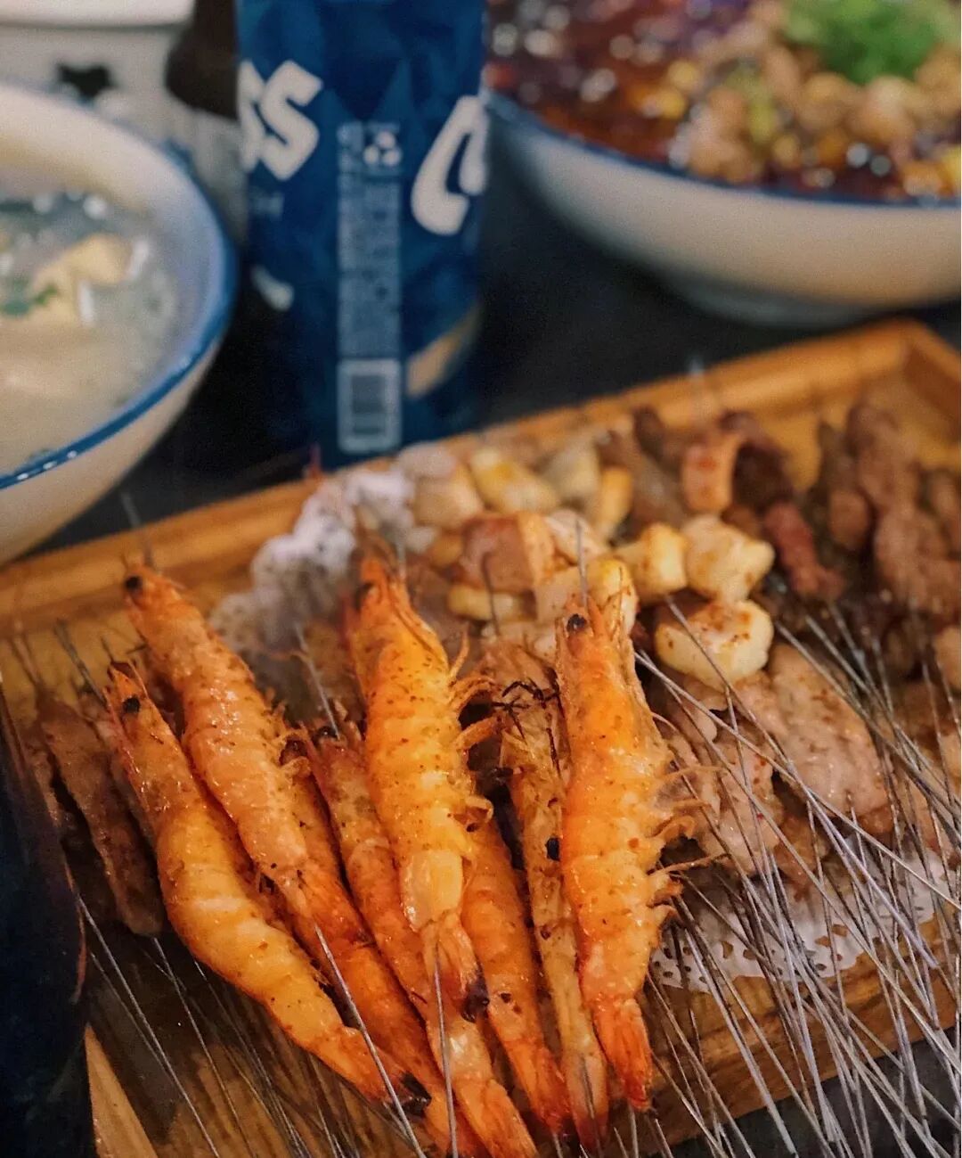 在青岛烧烤摊上,烧烤+青岛啤酒是不可分割的cp,此青啤非彼青啤,到了烧烤摊,就要喝最新鲜的扎啤,肉香、海鲜香、啤酒香汇集在一起,再加上迎面吹来的海风,这生活舒服得很!