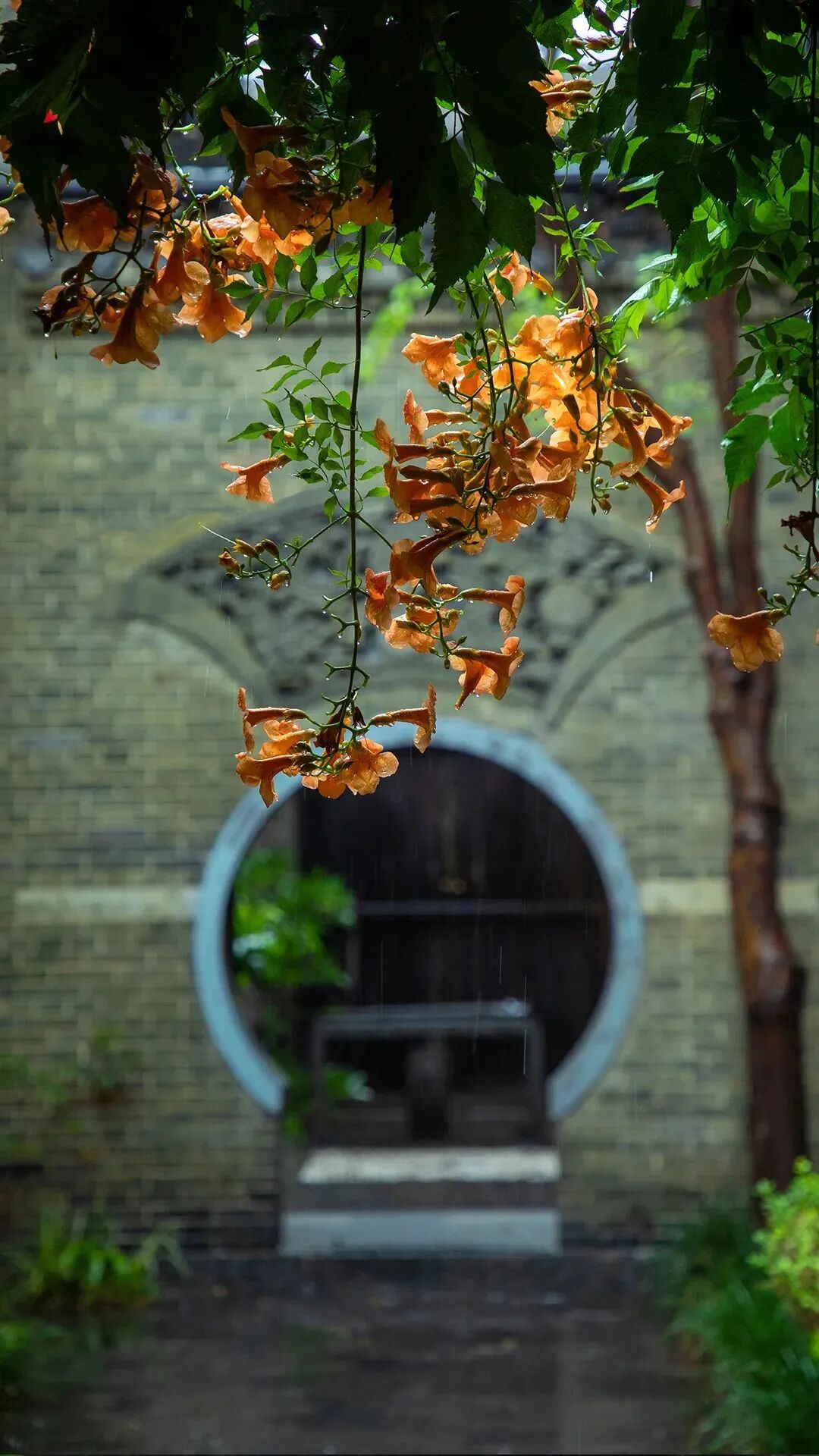 在古城里,一个拐角,一堵老墙,每一个触目能及的地方,都有开得热烈红火的凌霄花,这是一抹古城色彩的存在,不经意间让人眼前一亮。
