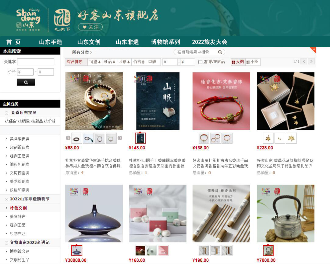 这里有众多山东特色的工艺精品,凸显“好客山东”的满满情意,文创精品让你目不暇接,成为一份来自山东文化的独特礼物。