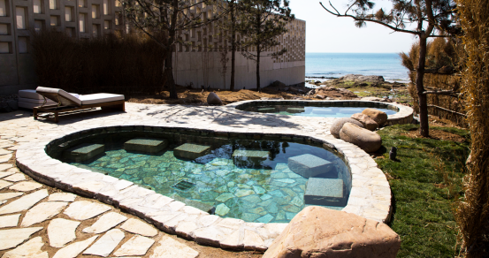 被海滨风光环绕,享受静谧时光,置身汤泉池,如同徜徉在大海之中。