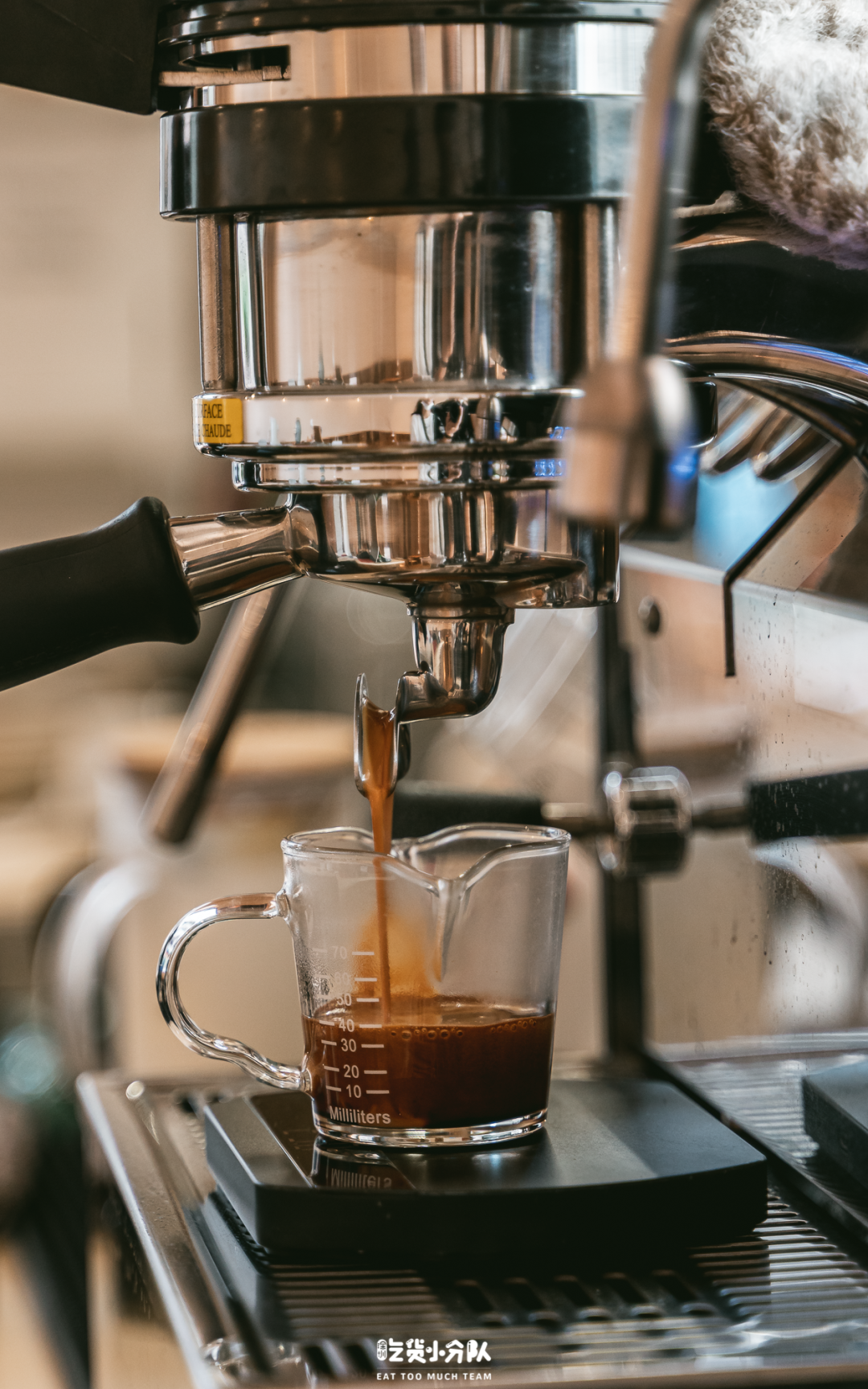 两家店有不同的拼配豆。店里比较特别的推荐,是榴莲拿铁。榴莲果肉在杯底,闻起来有浓郁榴莲香气。中深烘的拼配入口微酸,喝起来很顺滑。