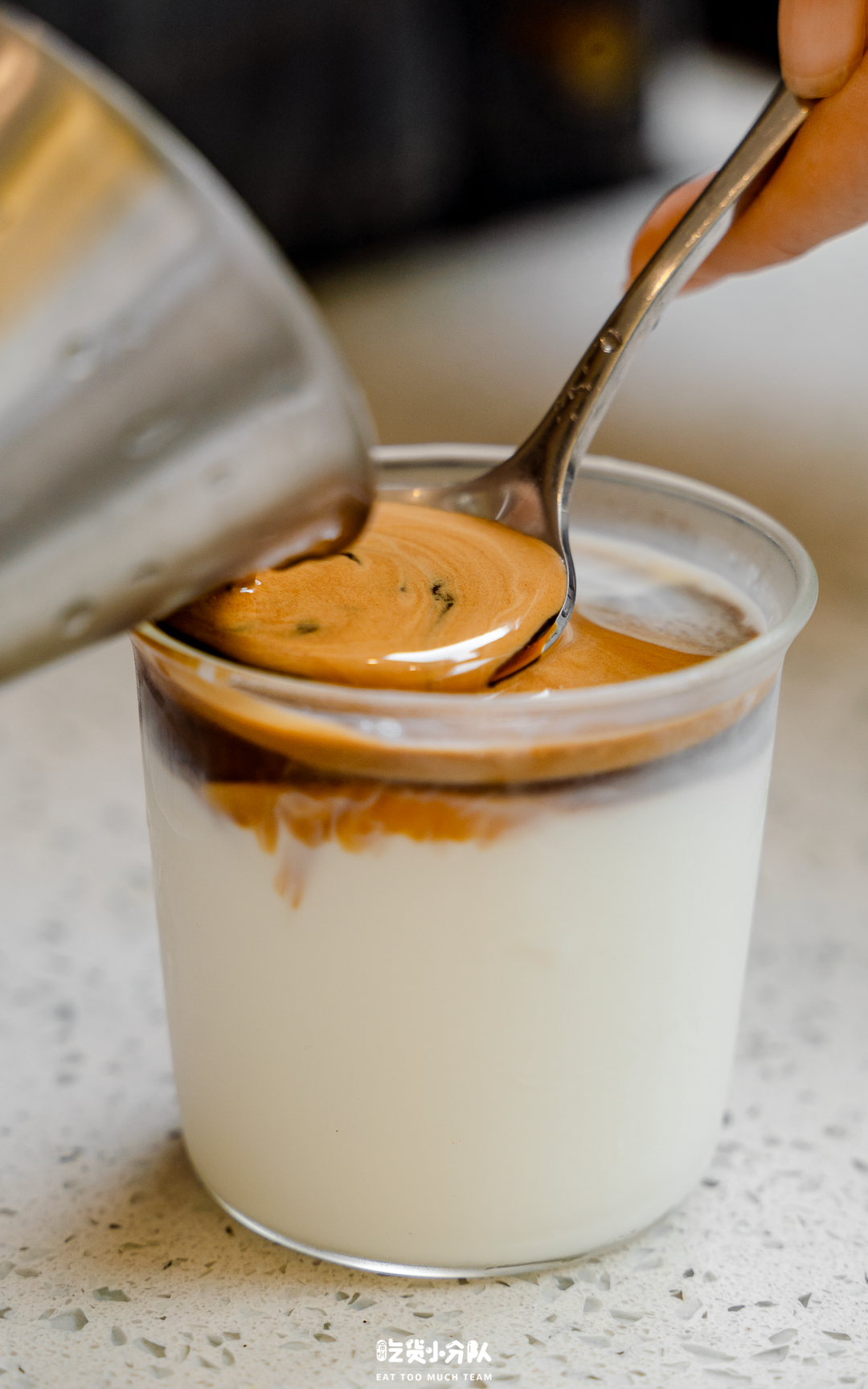 【冰博克dirty】,牛奶提纯乳冰博克上面放入咖啡浓缩液,分层明显。不搅拌、三口闷,是对它最大的尊重。在冰博克的加持下,咖啡的醇厚和口感都有提升。【咖啡果苏打】,用咖啡皮果酱做的苏打我是第一次见,加上青柠,有淡淡的花果香,不涩。