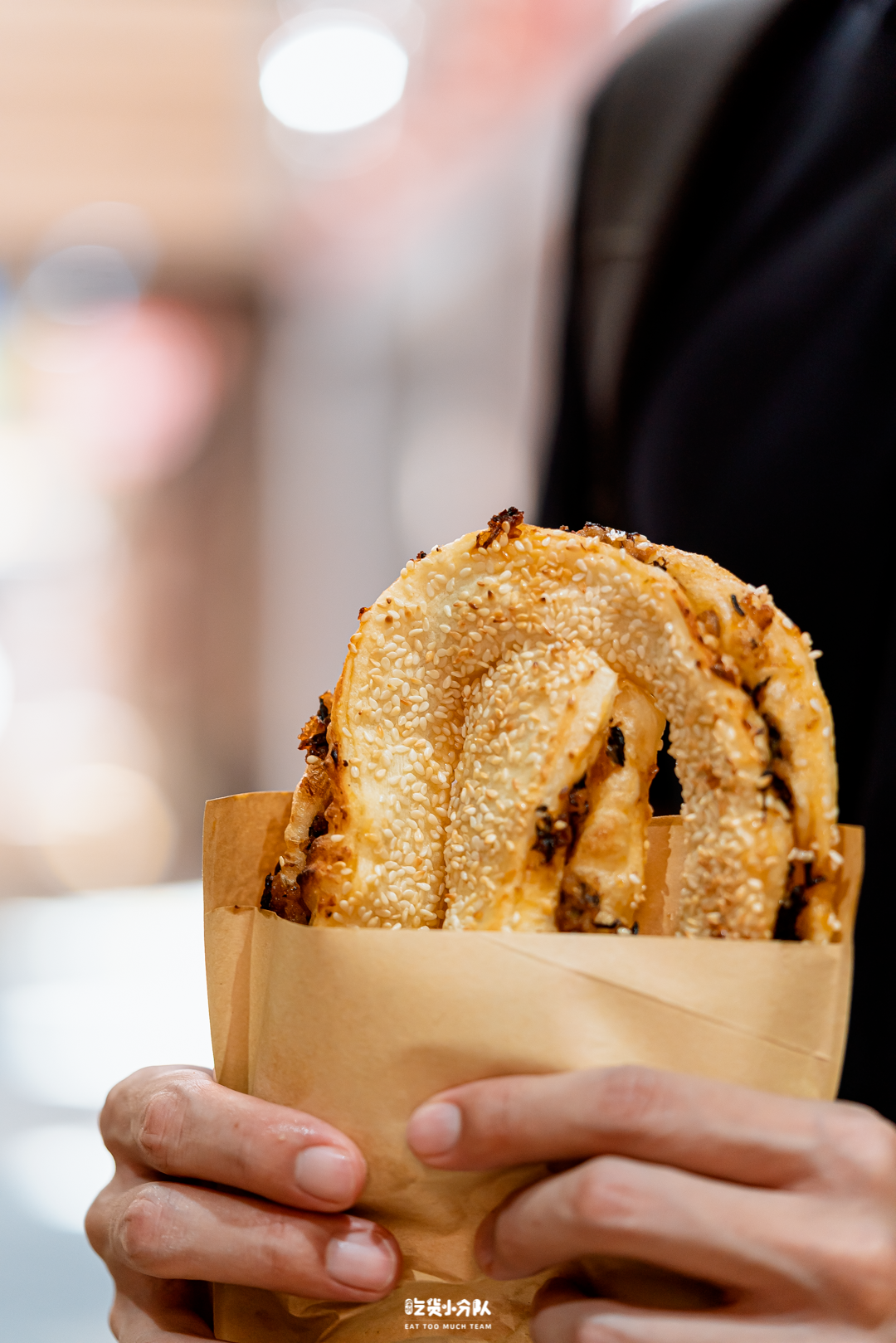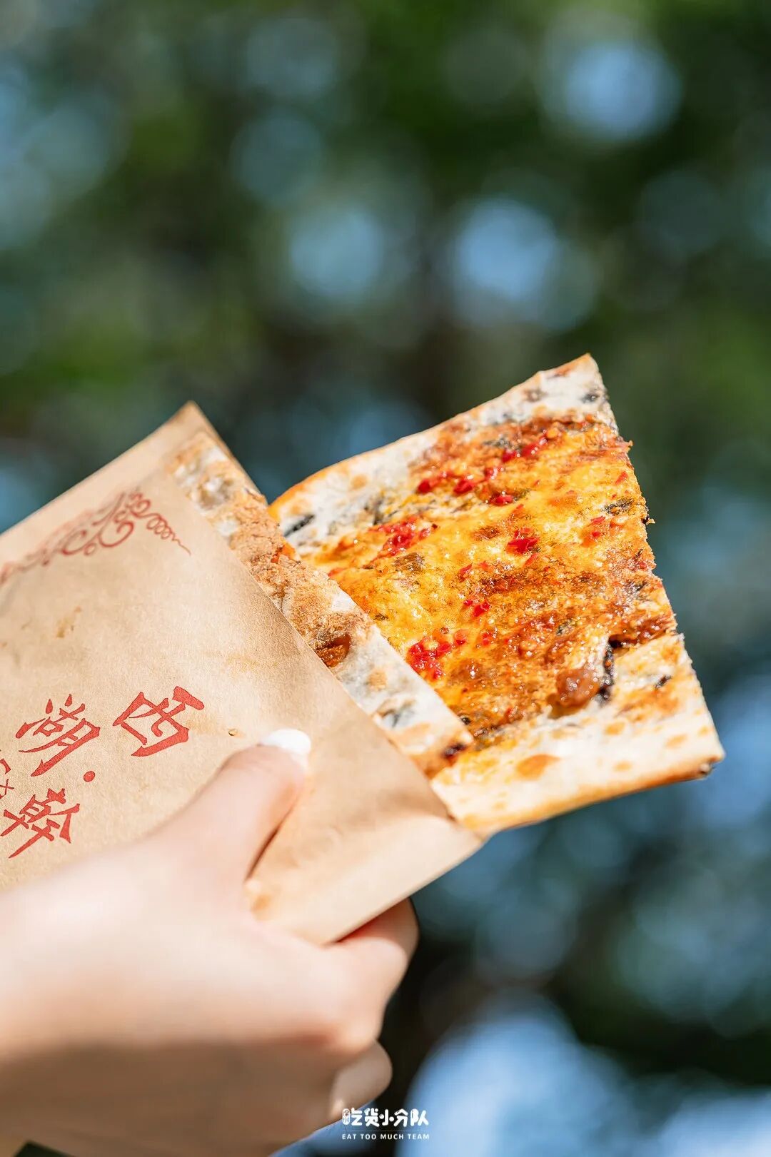 “邱记锅盔”,这是沔阳很出名的一种小吃,虽然和公安锅盔一样老家都在湖北,但长得真不一样,沔阳锅盔是拉成条形后,卷成类似“6”的形状,这样每一口都能吃到内馅。锅盔非常松软,轻轻一撕就开,喜欢的还能撒上一点孜然粉,味道会更香。